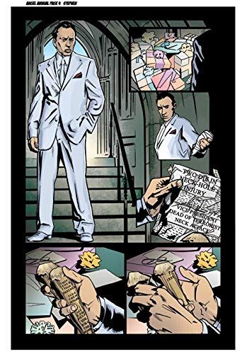 IDEA & DESIGN WORKS LLC Брайан Линч (сценарий) o Стивен Муни (рисунок) o Муни x 2 (обложка) Когда Лос-Анджелес погрузился в ад в фильме «После падения», то же самое произошло и с тысячами сценаристов, один из которых написал фильм, основанный на переживаниях Ангела там. Первый в истории ежегодный сборник «Ангел» представляет адаптацию приключений Ангела в голливудском стиле в фильме «Последний Ангел» в официальной экранизации. Авторы: Брайан Линч и Стивен Муни! Муни представляет две обложки кинопостеров: на одной изображен настоящий Ангел и его компания, на другой - их голливудские прототипы.
