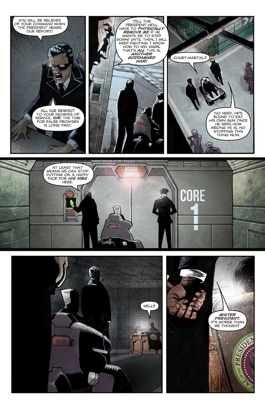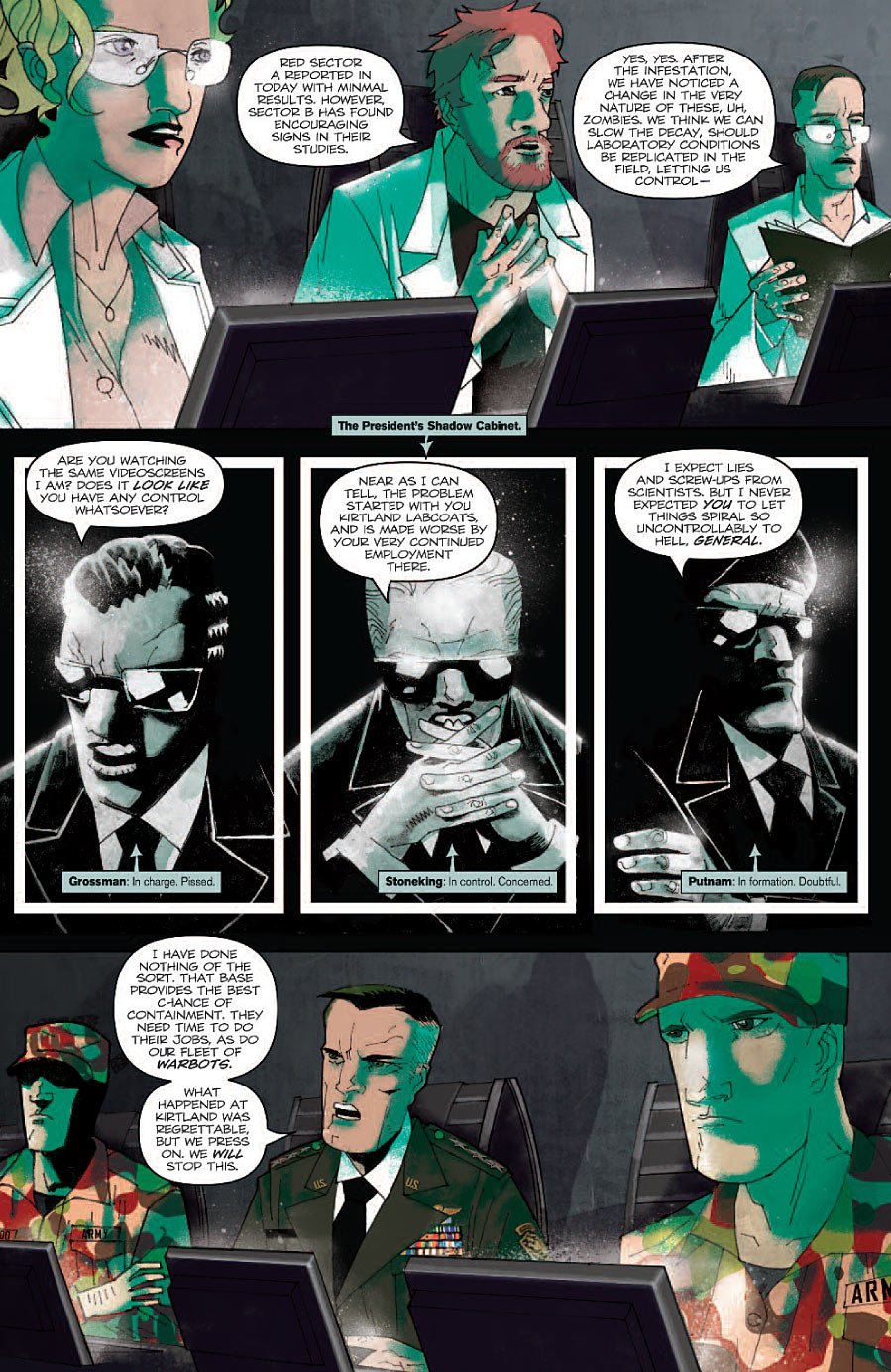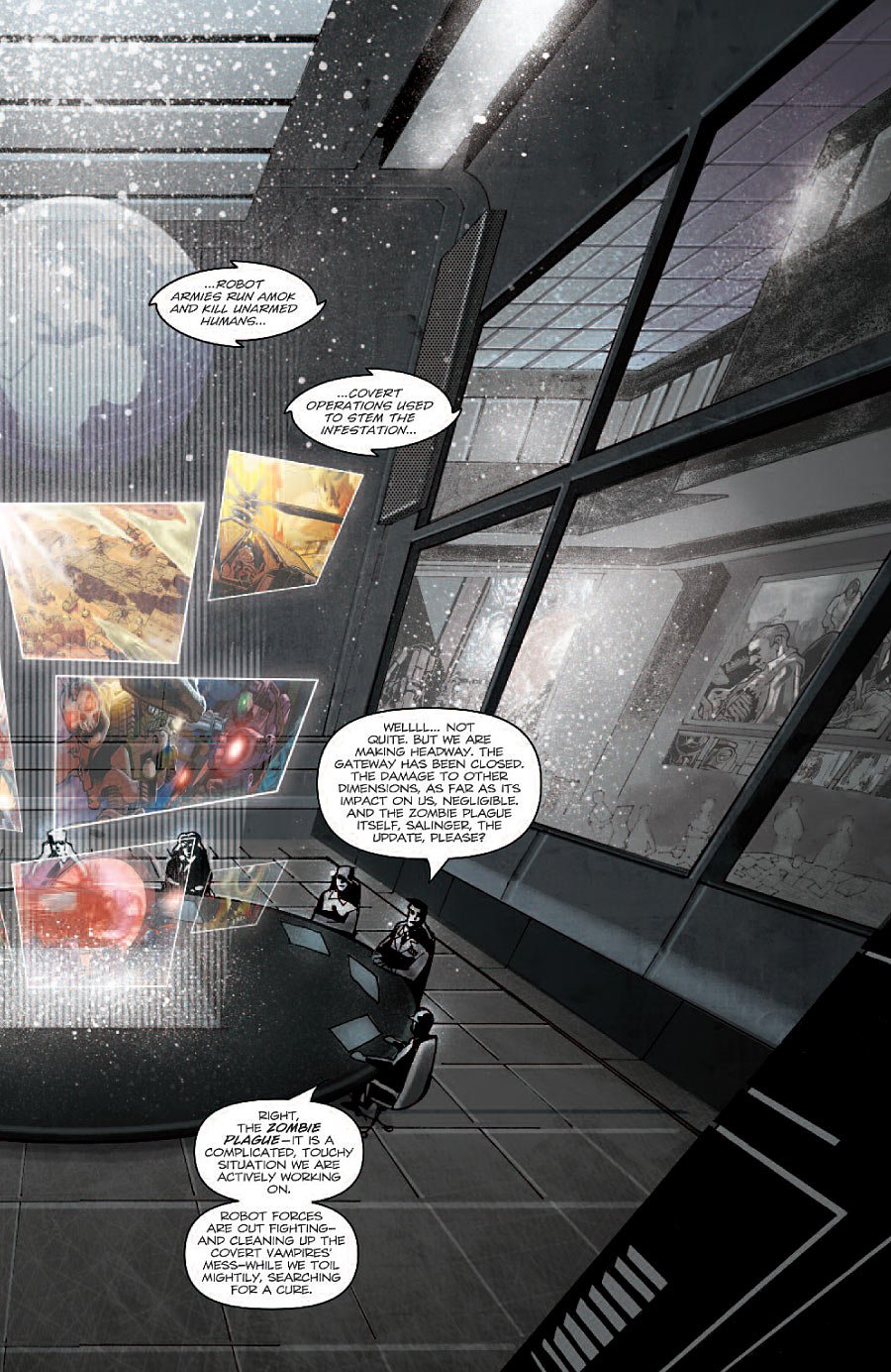 Заражение закончилось, но зомби остались! Роботизированные войска проигрывают войну этим гниющим массам, и остается только один выход - спуститься под землю… не говоря уже о том, что в убежище выживших в Подземном городе таится, возможно, еще большая угроза! Совершенно новая кровавая бойня зомби против роботов от Райалла и художника Марка Торреса! Продолжение истории, начатой ​​в «Заражении»!