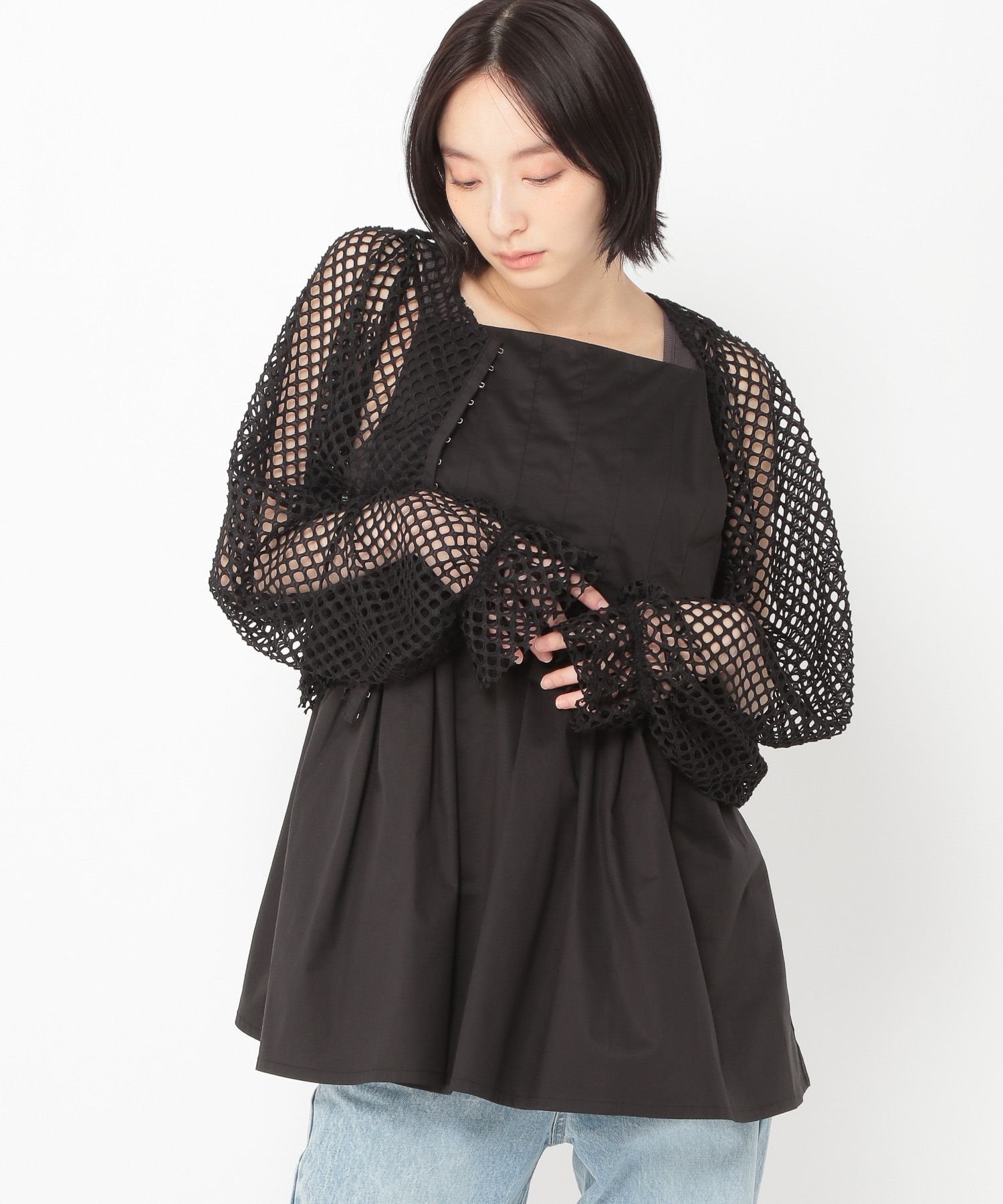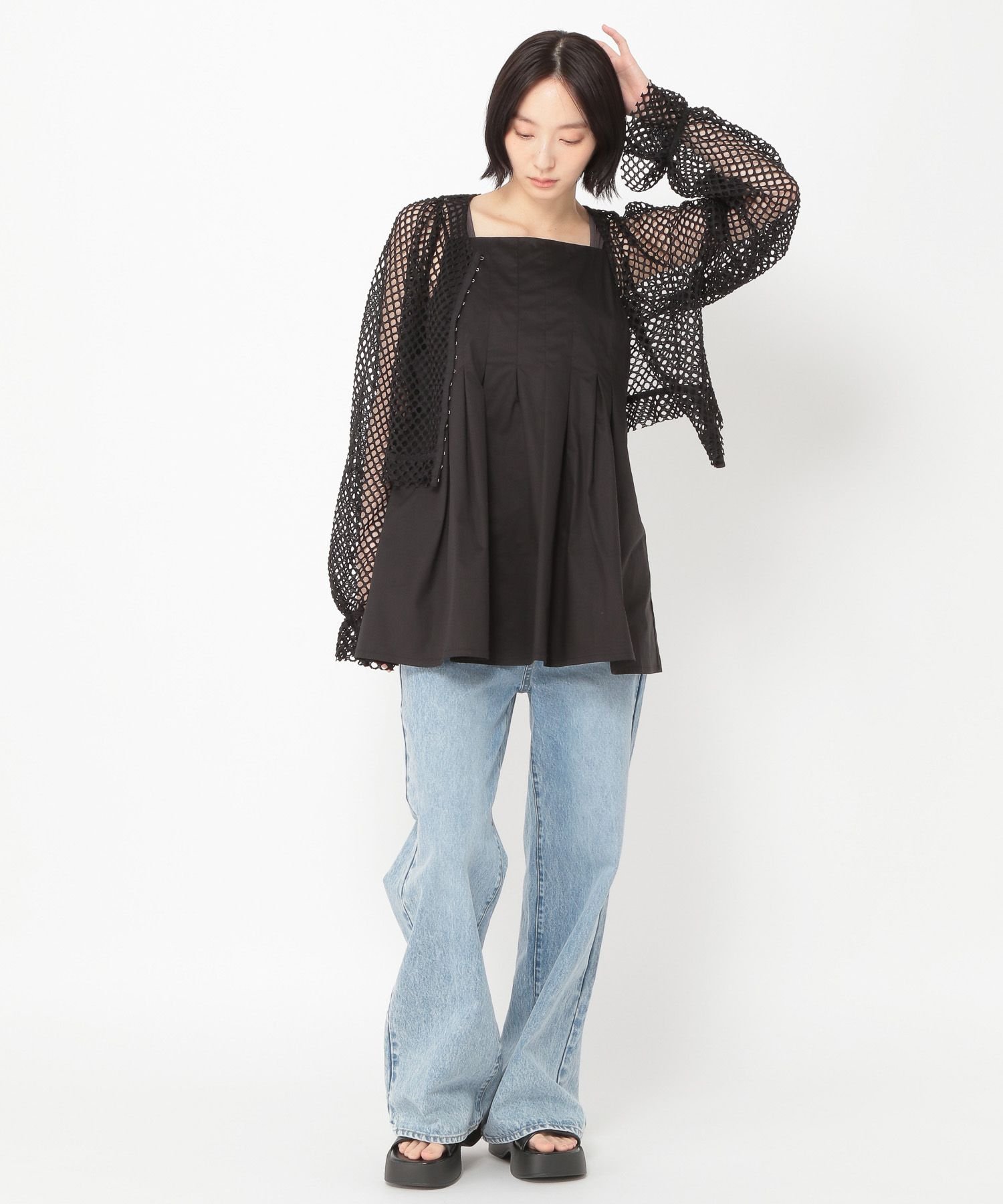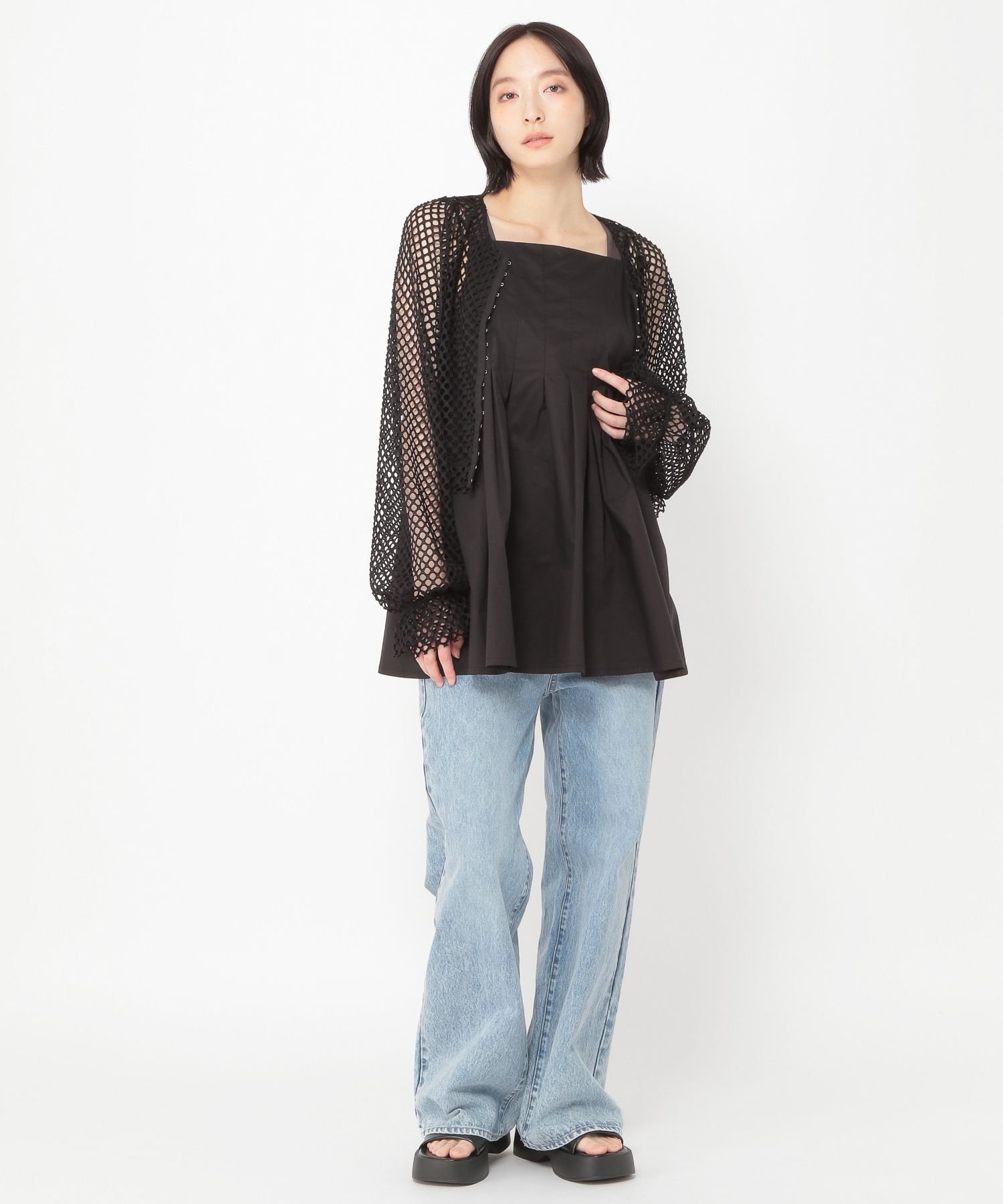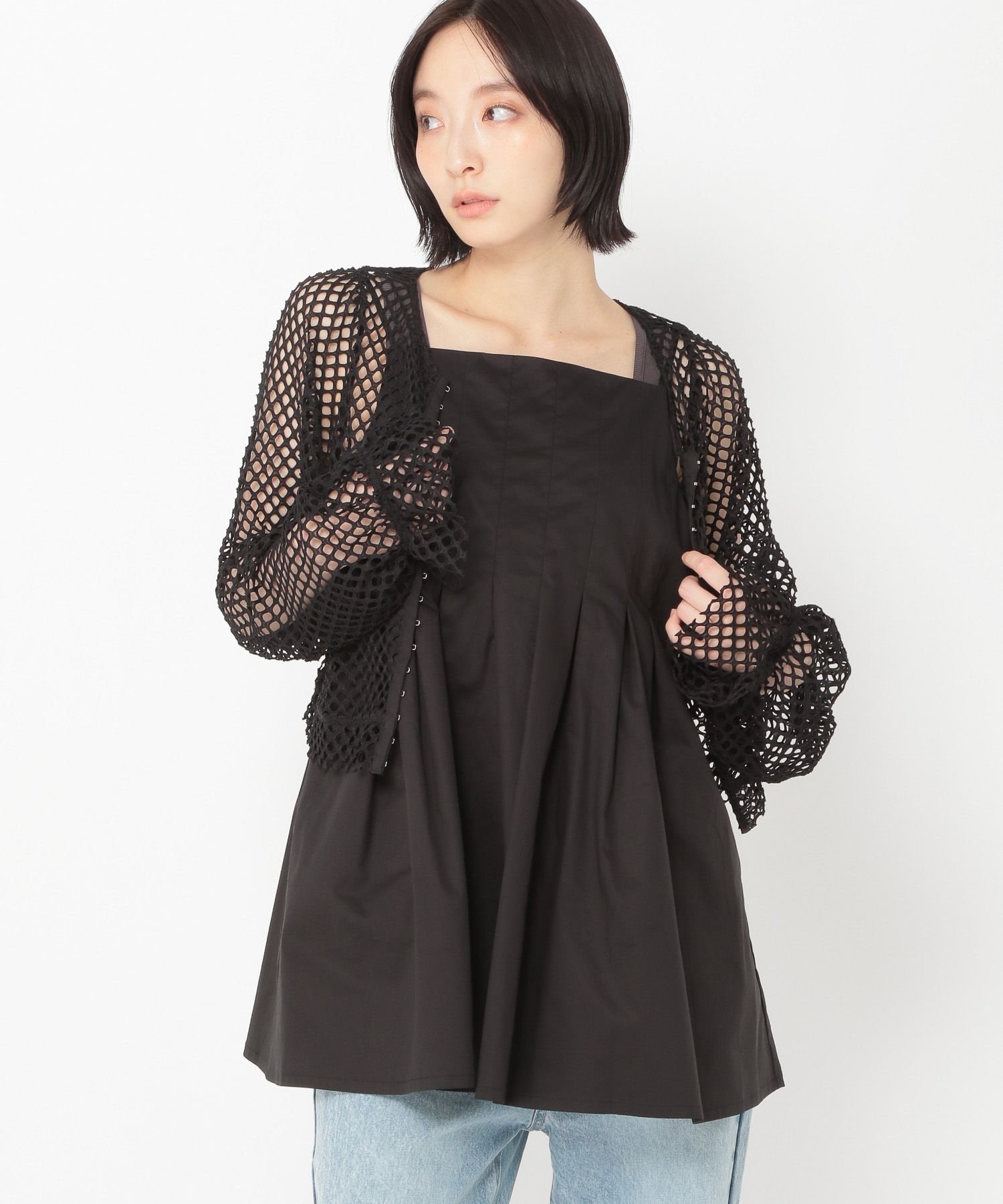 Кардиган из сетчатой ткани, который можно носить как спереди, так и сзади.