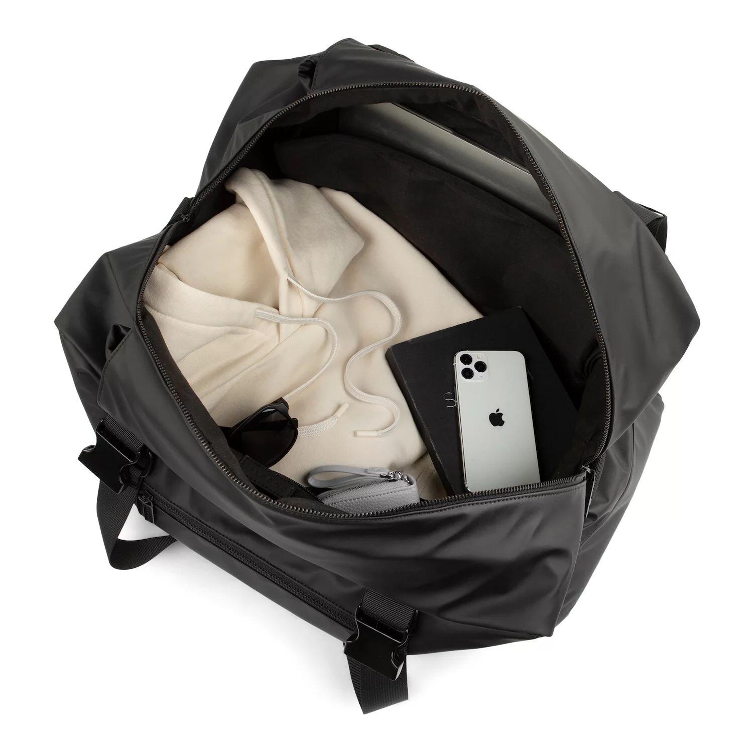 Дополнительная возможность носить спортивную сумку как рюкзак со встроенными регулируемыми лямками, спрятанными в сумке. верхние карманы