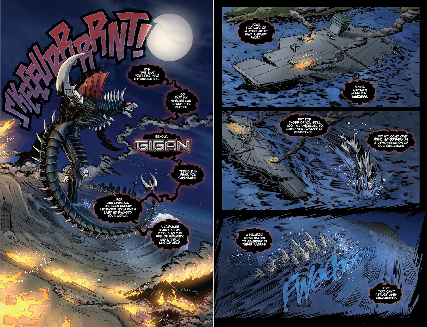 Второй том Godzilla: Rivals продолжает битву кайдзю, созданную авторами Ником Марино, Шоном Давом, Блю Делликванти, Фериовиндом, Джеймсом Ф. Райтом, Филлипом Джонсоном, Китом Дэвидсеном и СидВенБлу.