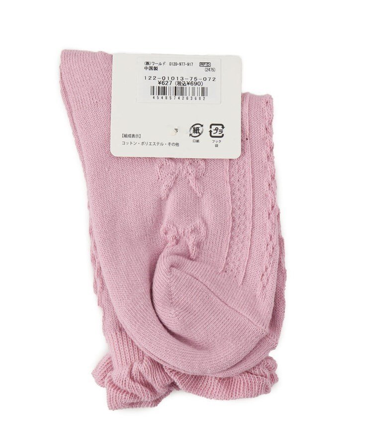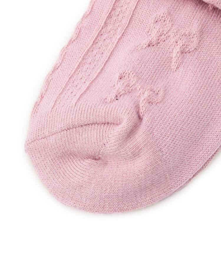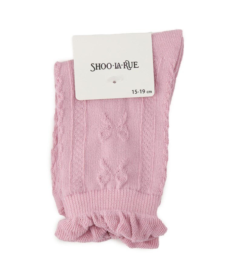 Эти носки средней длины украшены милым узором в виде ленточек и оборками — дизайн, который обязательно понравится девочкам.