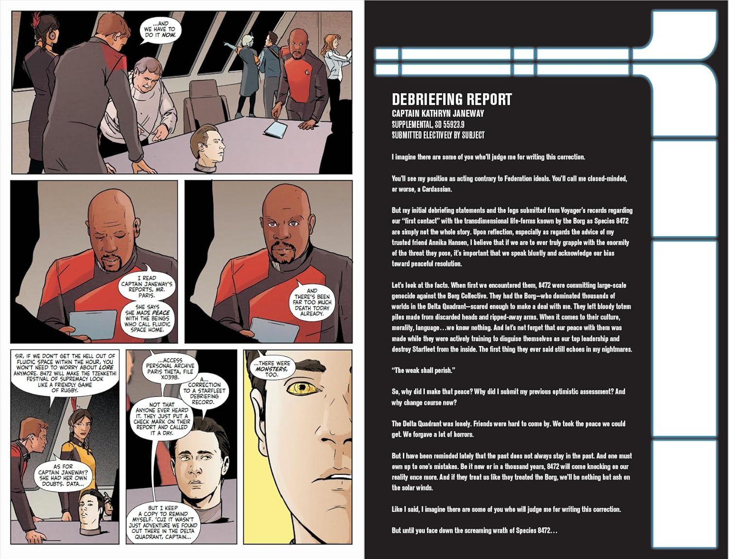 Пятая арка нашумевшей серии комиксов по вселенной Star Trek, являющаяся подготовкой к фильму Star Trek: Lore War, продолжается здесь! Андроид Лор совершил немыслимое: он взорвал Сферу Разрушения, уничтожив Вселенную!