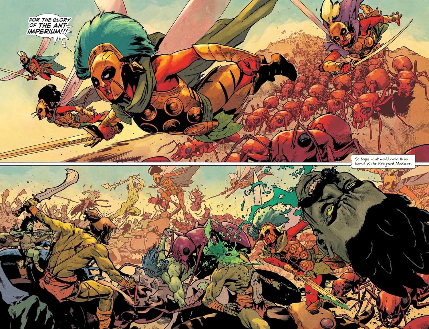 От звездной команды сценариста Джейсона Аарона (Southern Bastards, Teenage Mutant Ninja Turtles, Absolute Superman) и художника Махмуда Асрара (Conan the Barbarian, X-Men, Batman VS Robin) выходит BUG WARS: BOOK ONE, сборник выпусков № 1-6 новой масштабной фэнтезийной эпопеи.