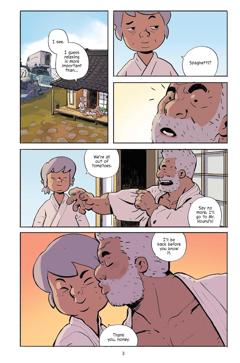 «Machine Boy Hero - это динамичное и уморительное приключение в постапокалиптическом мире, населенном людьми и говорящими собаками. Иллюстрации Три и Ирмы - настоящее удовольствие для глаз, и трудно не полюбить Машинного Мальчика, нашего героя с металлическим сердцем, и его приемную бабушку, мастера карате». - Кристен Гудснюк (Making Friends)