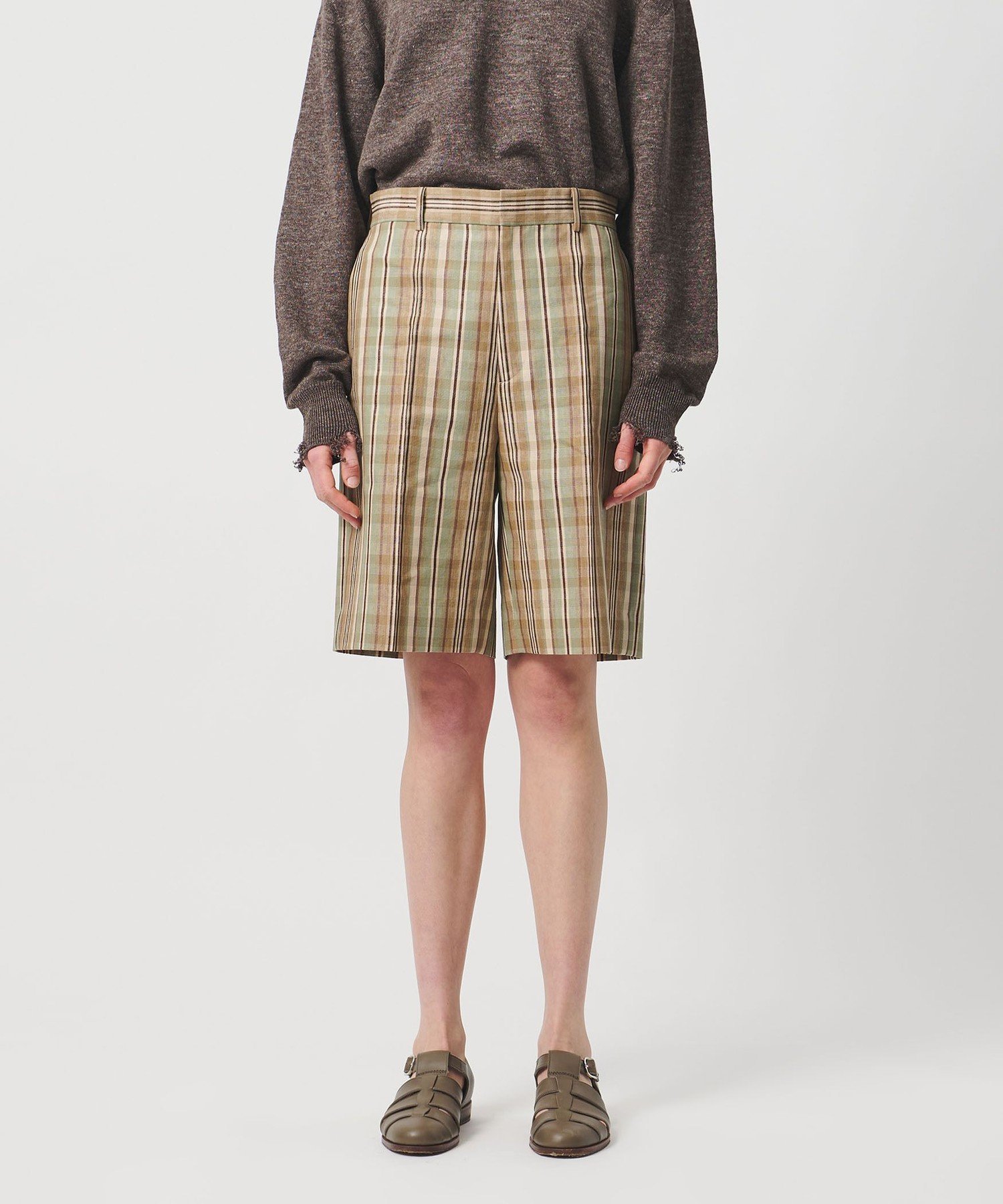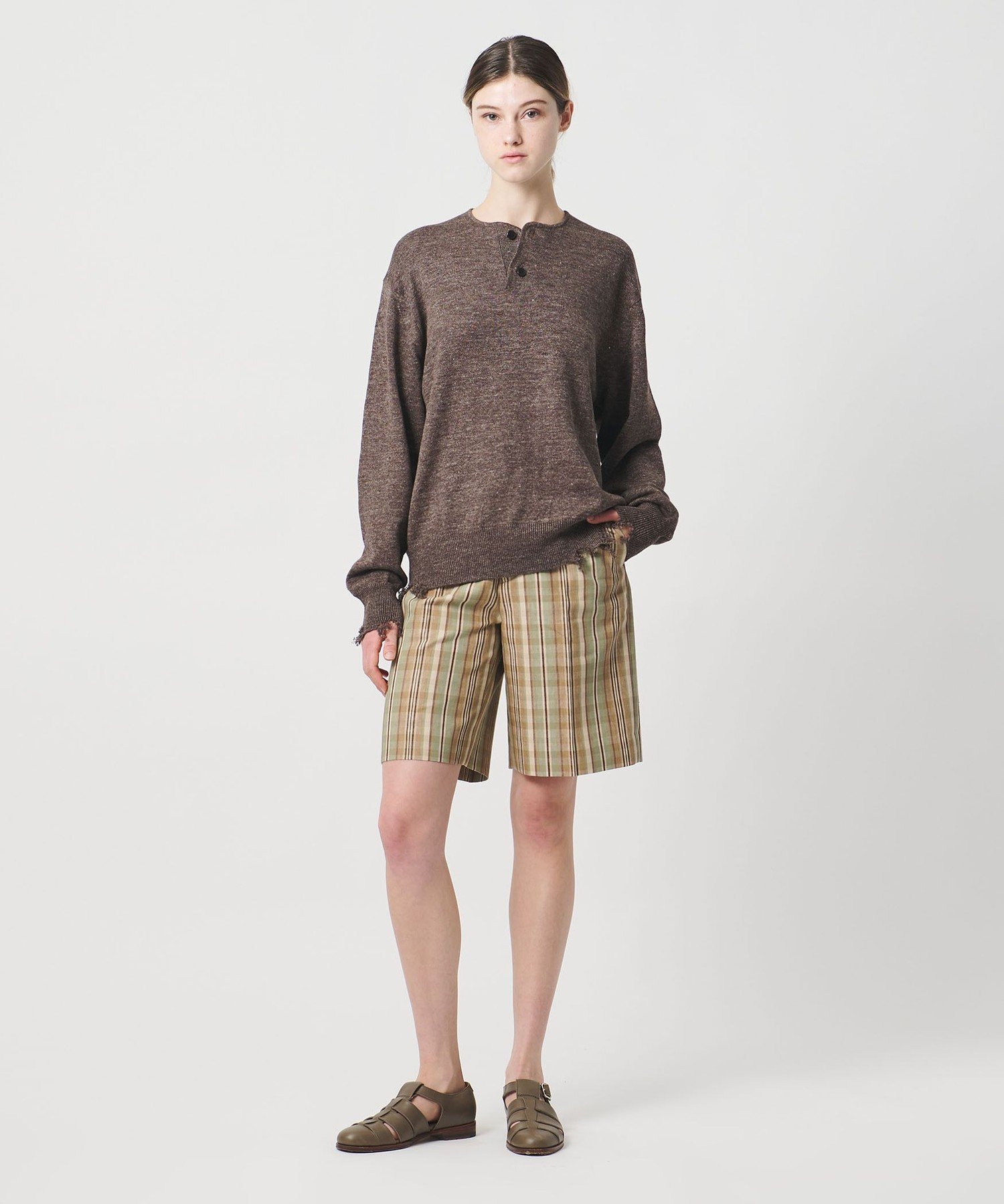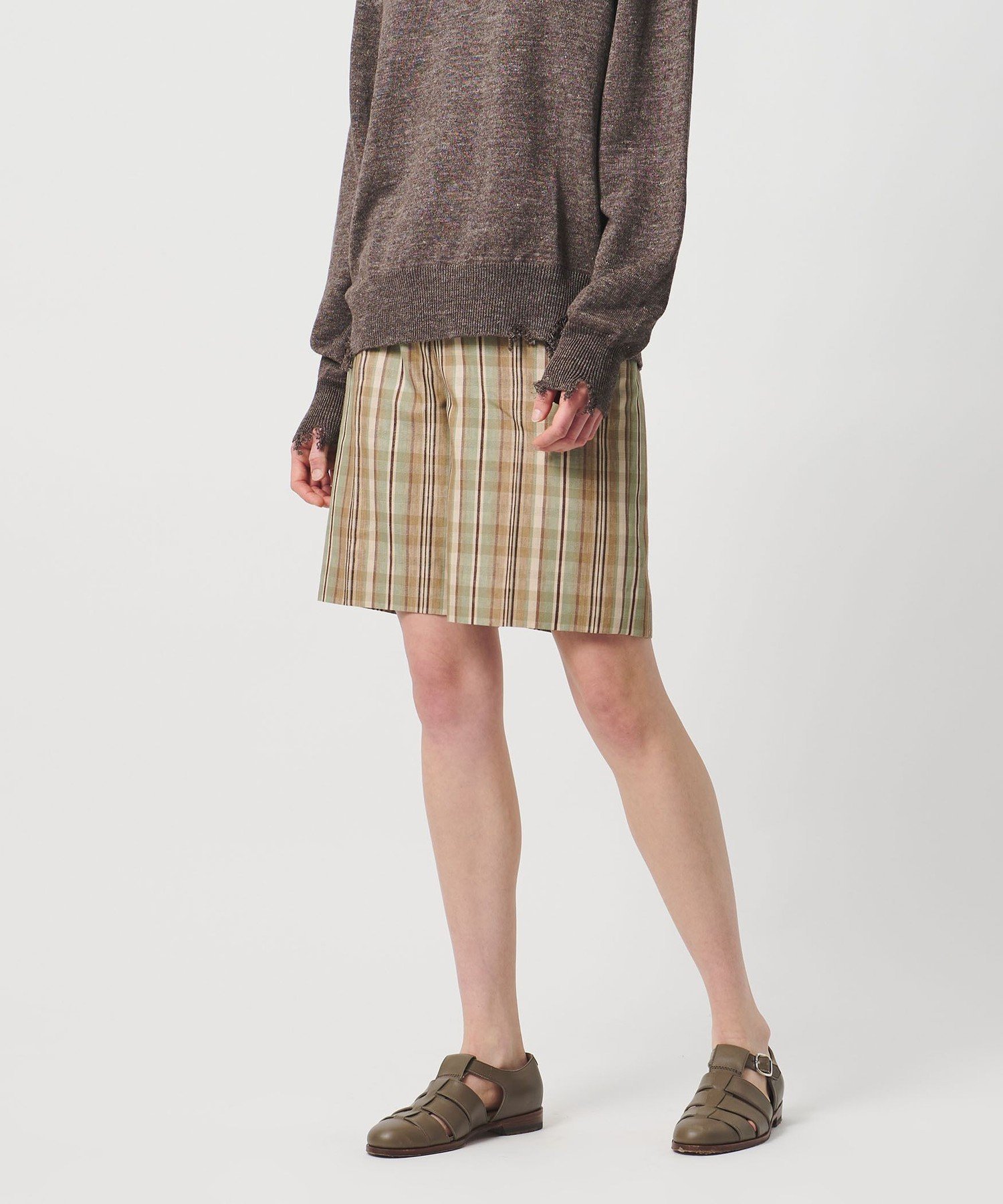 Эти кюлоты длиной до колена имеют низкую талию и слегка широкий силуэт, создавая сбалансированный образ, который кажется немного мальчишеским.