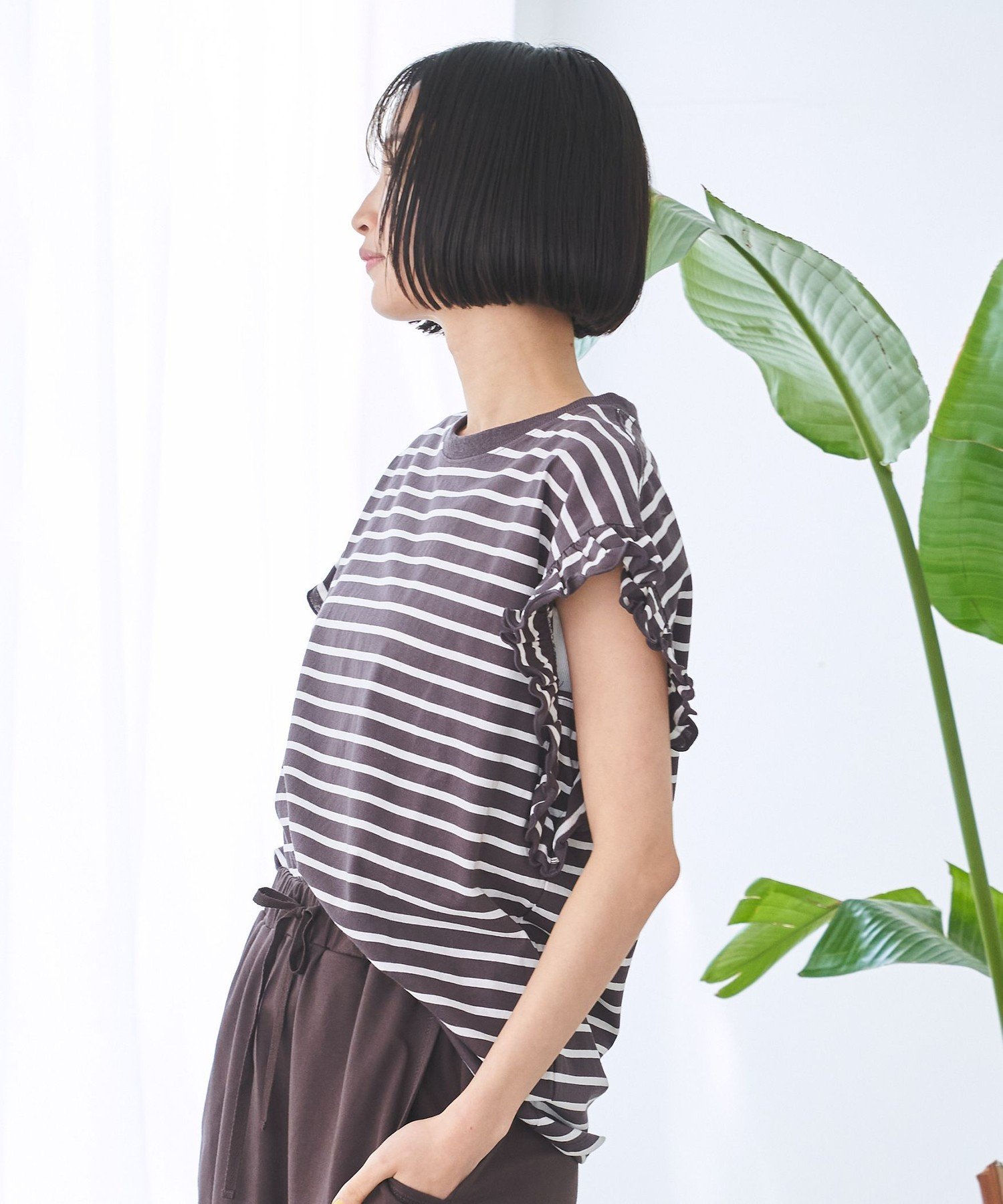 Популярная полосатая футболка с рукавами-воланами, добавляющими нотку гламура.