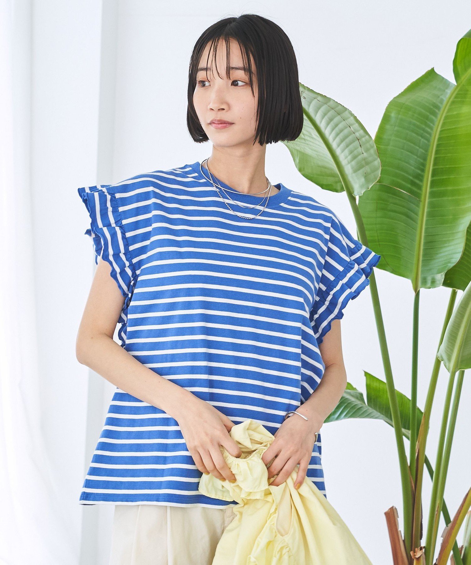 Популярная полосатая футболка с рукавами-воланами, добавляющими нотку гламура.