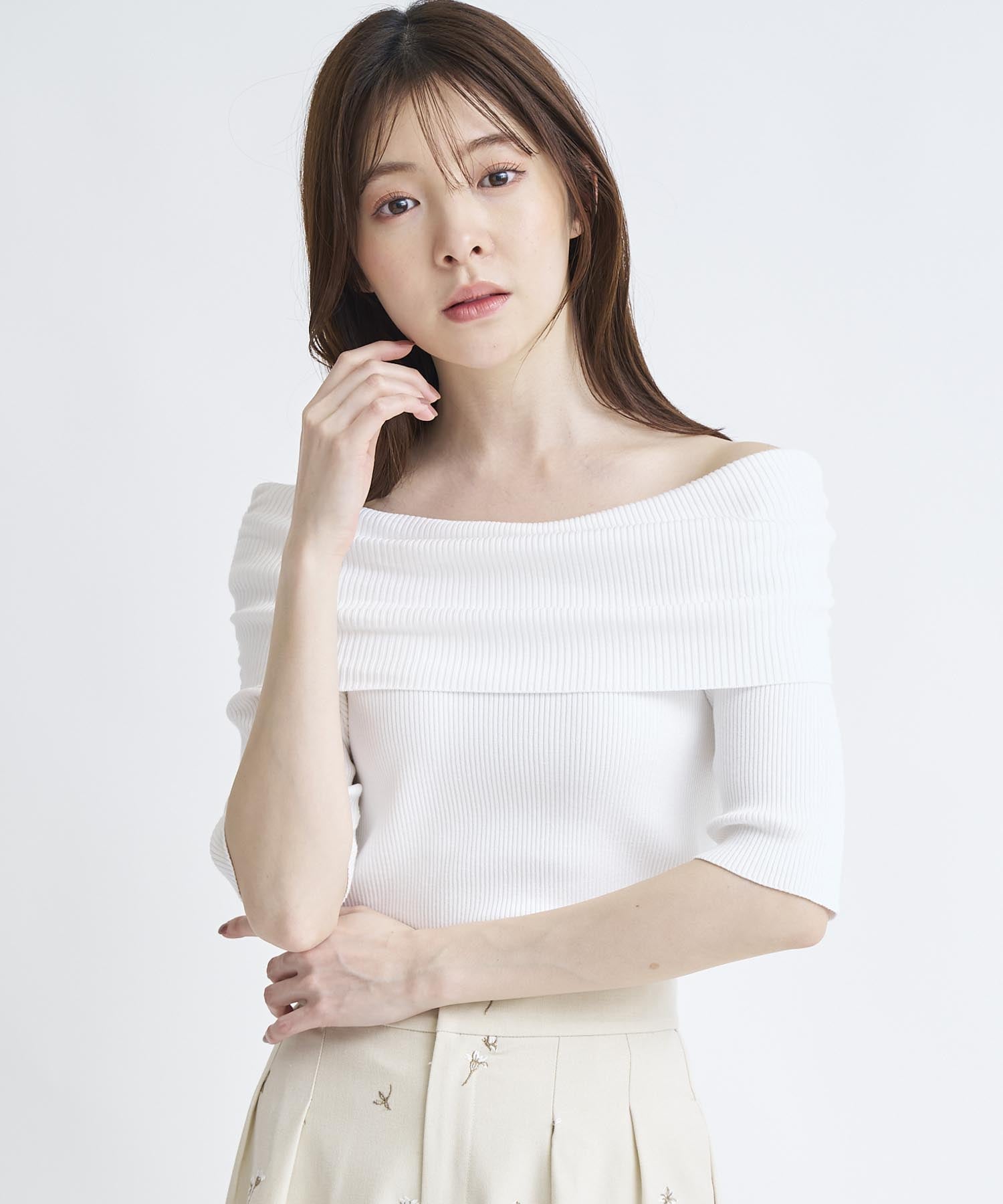 Триберный пуловер в рубчик с впечатляющим дизайном, открывающим плечи.