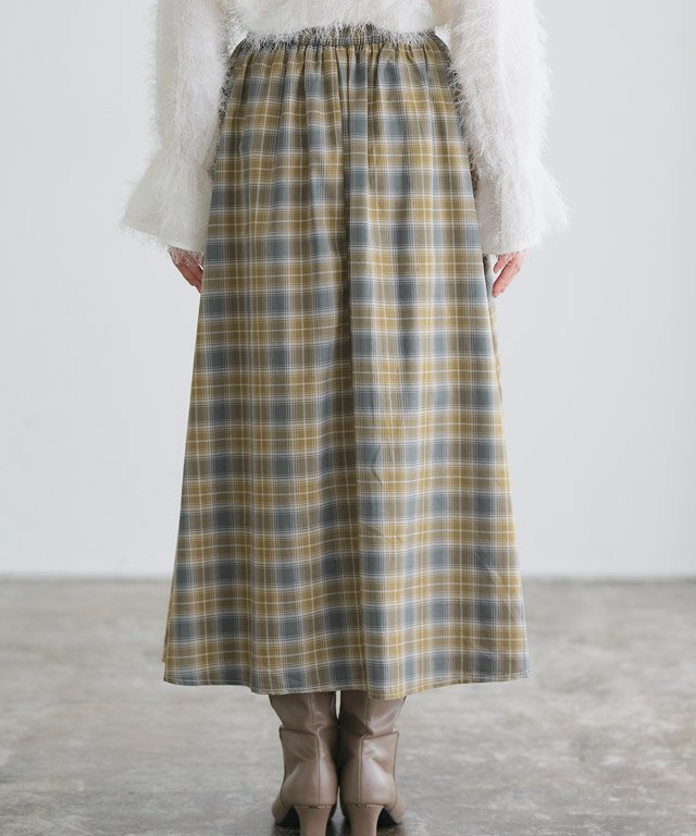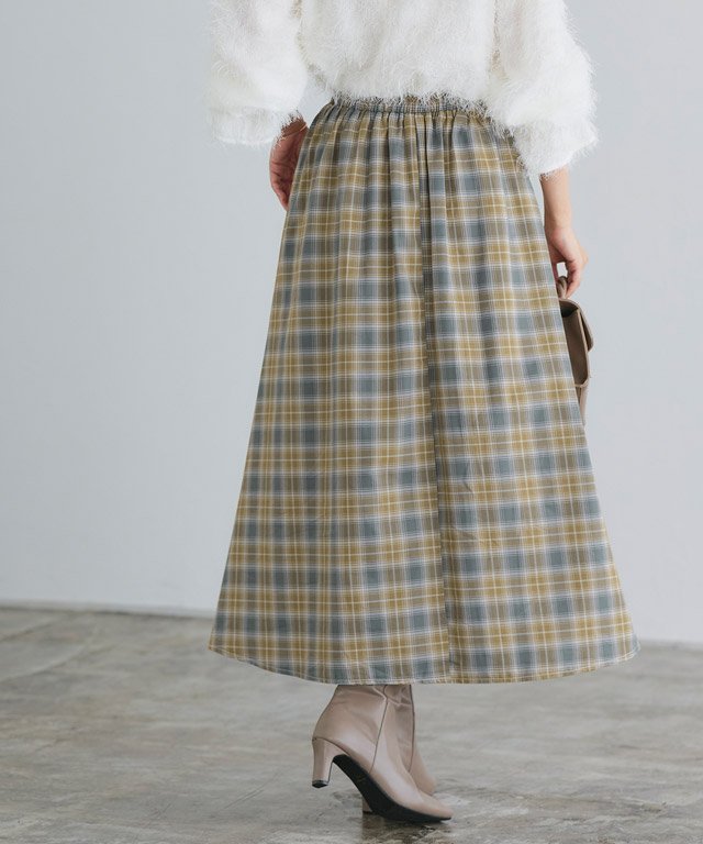 Эта юбка отличается привлекательным клетчатым узором, позволяющим наслаждаться классическим образом. Силуэт плавно расширяется к подолу, создавая естественное развевание при каждом движении. Эластичный пояс сзади обеспечивает комфорт. Мы рекомендуем заправлять топ для сбалансированного образа.