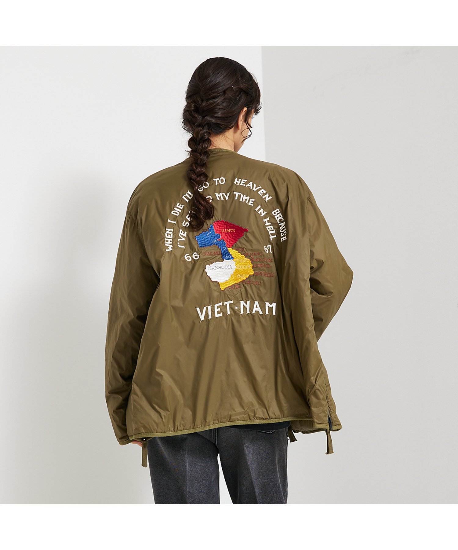 На передней стороне — джемпер времен войны во Вьетнаме с вышивкой.
