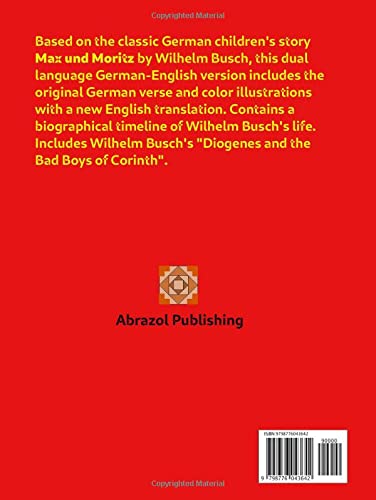Основанная на классической немецкой детской сказке Вильгельма Буша «Макс и Мориц», эта двуязычная немецко-английская версия включает оригинальные немецкие стихи и цветные иллюстрации с новым английским переводом. Содержит биографическую хронологию жизни Вильгельма Буша. Включает книгу Вильгельма Буша «Диоген и хулиганы Коринфа».
