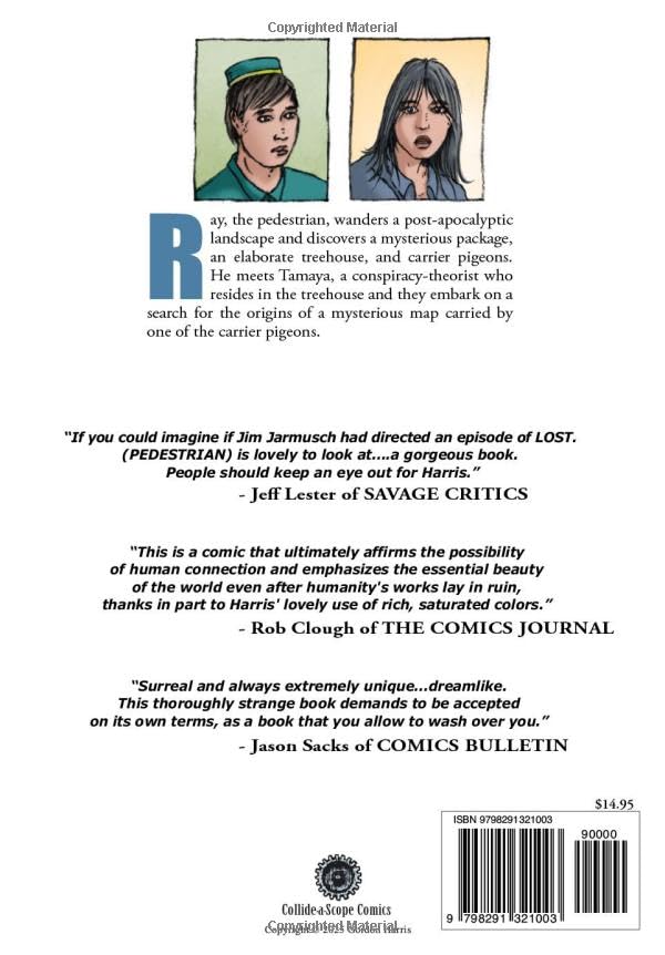 Постапокалиптический графический роман БЕЗ зомби и вампиров. Рэй, обычный пешеход, бродит по постапокалиптическим пригородам и обнаруживает таинственную посылку, замысловатый домик на дереве и почтовых голубей. Он встречает Тамайю, самопровозглашенную, скрытую сторонницу теорий заговора, которая живет в домике на дереве, и вскоре они отправляются на поиски происхождения таинственной карты, которую несет... э-э, один из почтовых голубей.