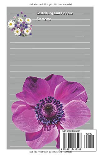 Wahrhaft schöne Blumen beinhaltet dieses Notizbuch. Мотив настолько платный, что он думает о том, что сайт будет доступен для бесплатных новостей. Der Hintergrund wechselt in den Farben .Wir haben hier übrigens die heurigen Modefarben verwendet. Die dünnen weißen Hilfslinien erleichtern das Schreiben, ohne dass sie das Bild, die Seite kaputt machen. Insgesamt ein sehr Buntes und Freudiges und Freundliches Notizbuch. Vor allen für Menschen die Blumen Lieben.