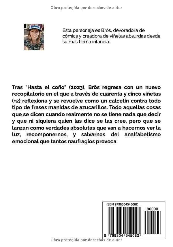Tras "Hasta el coño" (2023), Brös regresa con un nuevo recopilatorio en que a través de cuarenta y cinco viñetas (+2) рефлексия и вызывает восхищение как ип-кальцетин против всех типо де-фраз из асукарильо. Todo aquellas cosas que se dicen cando realmente no se tiene nada que decir и que ni siquiera quien las dice se las cree, pero que se lanzan como verdades absolutas que van acernos ver la luz, recomponernos, y salvarnos del analfabetismo emocional que tantos naufragios provoca.