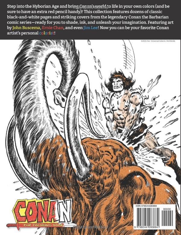 В этом сборнике представлены десятки классических черно-белых страниц и ярких цветов из легендарной серии комиксов о Конане-варваре - готовых к тому, чтобы вы заштриховали, обвели контуры и дали волю своему воображению. В числе художников - Джон Бушема, Эрни Чан и даже Джим Ли! Теперь вы можете стать личным колористом своего любимого художника, работавшего над комиксами о Конане!