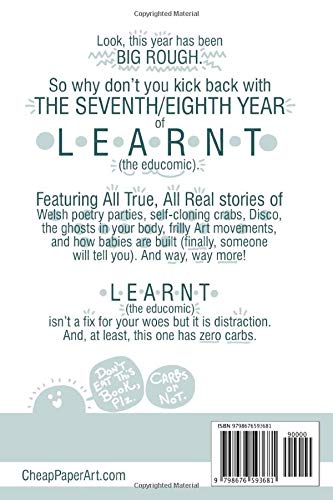 Знать что-то новое - это здорово, правда? Но это невероятно сложно. Столько всего старого. А нового? Оно никогда не заканчивается! Пфф. Даже не начинайте. Послушайте, мы оба понимаем, что вы очень занятой человек. Ни у кого нет времени на то, чтобы все это знать. Что ж, занятой человек - LEARNT здесь, чтобы помочь. Эта книга, содержащая все выпуски седьмого года веб-комикса LEARNT, гарантированно познакомит вас с самокопирующимися крабами, звездами разных размеров, лакрицей и бумбо. Устройтесь поудобнее с этой 100-страничной книгой полноцветных комиксов и узнайте все!