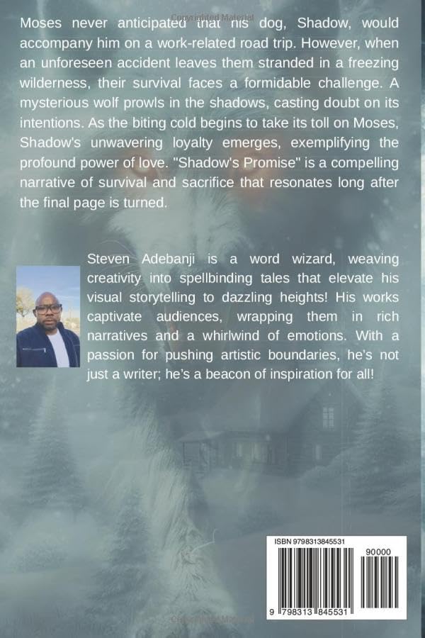 Моисей никак не ожидал, что его собака, Шэдоу, отправится с ним в рабочую поездку. Однако, когда неожиданная авария оставляет их в ледяной глуши, выживание становится серьезным испытанием. В тени скрывается таинственный волк, вызывающий вопросы о его намерениях. По мере того, как пронизывающий холод начинает сказываться на Моисее, непоколебимая преданность Шэдоу проявляется во всей красе, демонстрируя глубокую силу любви. «Обещание Шэдоу» - захватывающая история выживания и самопожертвования, которая остается в памяти еще долго после того, как перевернута последняя страница.