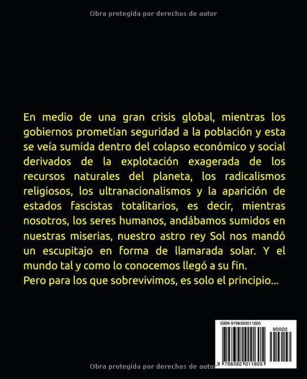 В условиях большого глобального кризиса, в период глобального кризиса правительство способствует обеспечению безопасности населения, и это приводит к тому, что в результате экономического коллапса и социальных последствий эксплоатации усиливаются природные рецидивы планеты, религиозный радикализм, ультранационализм и сравнение. de estados fascistas totalitarios... (es decir, mientras nosotros, los seres humanos, andábamos sumidos en nuestras miserias), nuestro astro rey Sol nos mandó un escupitajo en forma de llamarada sun. И мир тал, и как знающие люди лего на су fin. Но, чтобы мы сохранились, мы сожалеем о принципе...