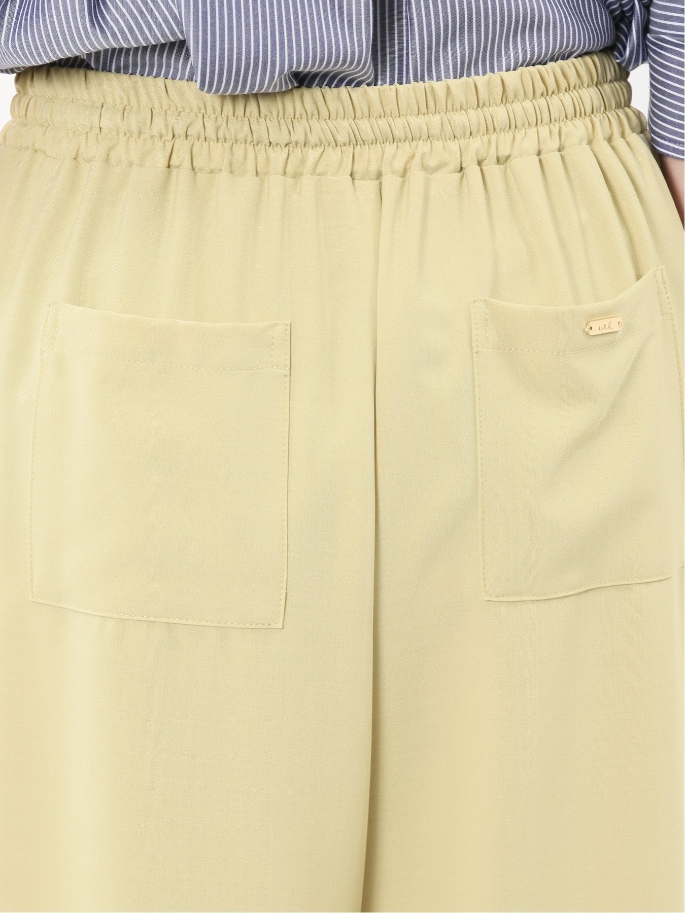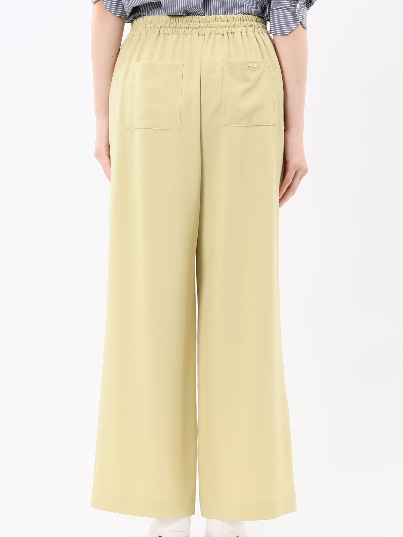 Эти брюки с широкими штанинами имеют одну складку для свободы движений в области талии. Сборка на поясе делает их удобными в ношении. Эти брюки имеют удобную конструкцию без молний и пуговиц, передние и задние карманы, а также обработанный низ. (Длина внутреннего шва M: 68 - L: 69, длина штанины в одну сторону)