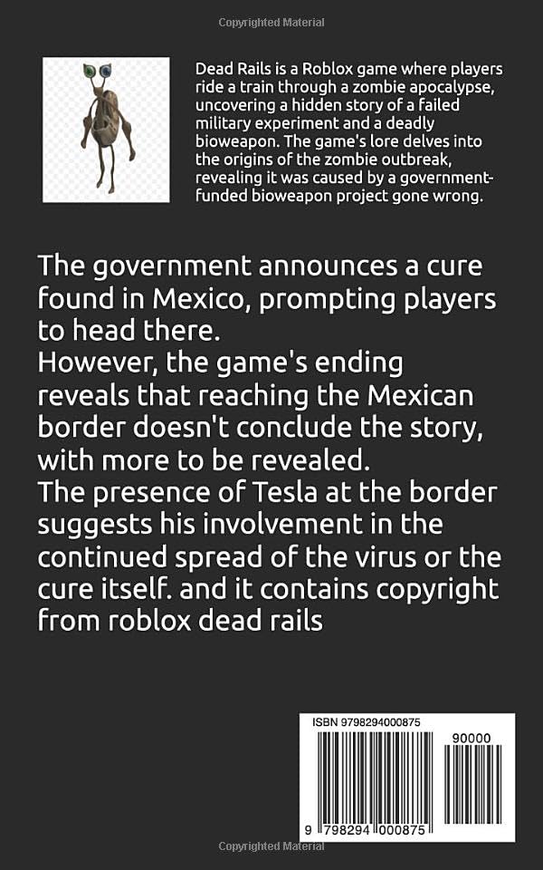 Это история, связанная с игрой Roblox. Dead Rails - это игра Roblox, в которой игроки едут на поезде сквозь зомби-апокалипсис, раскрывая скрытую историю неудачного военного эксперимента и смертоносного биологического оружия. Лор игры углубляется в происхождение зомби-эпидемии, раскрывая, что она была вызвана неудачным проектом по созданию биологического оружия, финансируемым правительством. Игроки встречаются в различных локациях, таких как Стерлинг, шахтерский город, и завод Теслы, каждая из которых содержит подсказки к сюжету игры. История завершается гонкой в ​​Мексику за потенциальным лекарством, где им предстоит столкнуться с такими опасностями, как бандиты, зомби и сам создатель биологического оружия, Никола Тесла.
