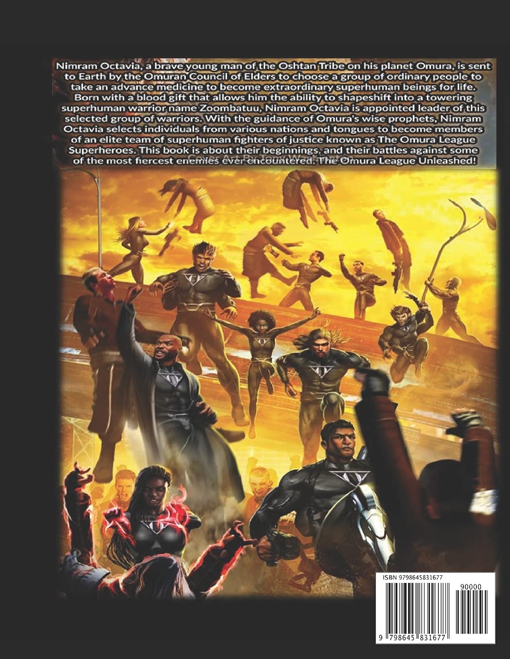 Нимрам Октавия, храбрый юноша из племени Оштан с планеты Омура, отправлен на Землю Советом старейшин Омуры, чтобы выбрать группу обычных людей для приема передового лекарства, которое превратит их в необыкновенных сверхлюдей на всю жизнь. Родившись с даром крови, позволяющим ему превращаться в огромного сверхчеловеческого воина по имени Зумбатуу, Нимрам Октавия назначается лидером этой избранной группы воинов. Под руководством мудрых пророков Омуры Нимрам Октавия отбирает людей из разных стран и языков Земли, чтобы они стали членами элитной команды сверхчеловеческих борцов за справедливость, известной как Лига Супергероев Омуры. Эта книга рассказывает об их начале и битвах против самых свирепых врагов, когда-либо встречавшихся им. Лига Омуры на свободе!