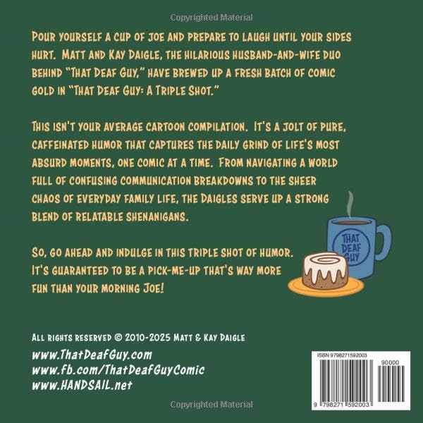 Это премиальный сборник карикатур, включающий только лучшие и самые любимые комиксы из архива «Того глухого парня», а также ранее не публиковавшиеся работы. Это заряд чистого юмора, отражающий повседневную рутину и самые абсурдные моменты жизни. От преодоления запутанных проблем с общением до полного хаоса повседневной семейной жизни, эта книга предлагает удачное сочетание понятных каждому забавных ситуаций. Идеально подходит для всех, кто любит юмор, семейные истории или хочет взглянуть на забавную сторону жизни глухого человека в мире слышащих.