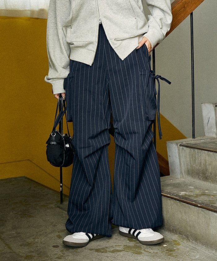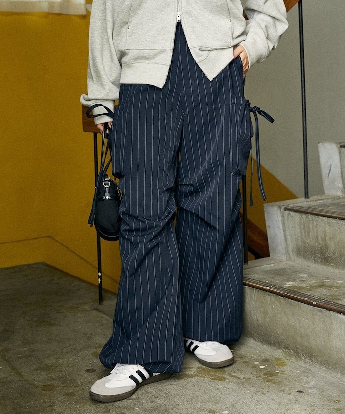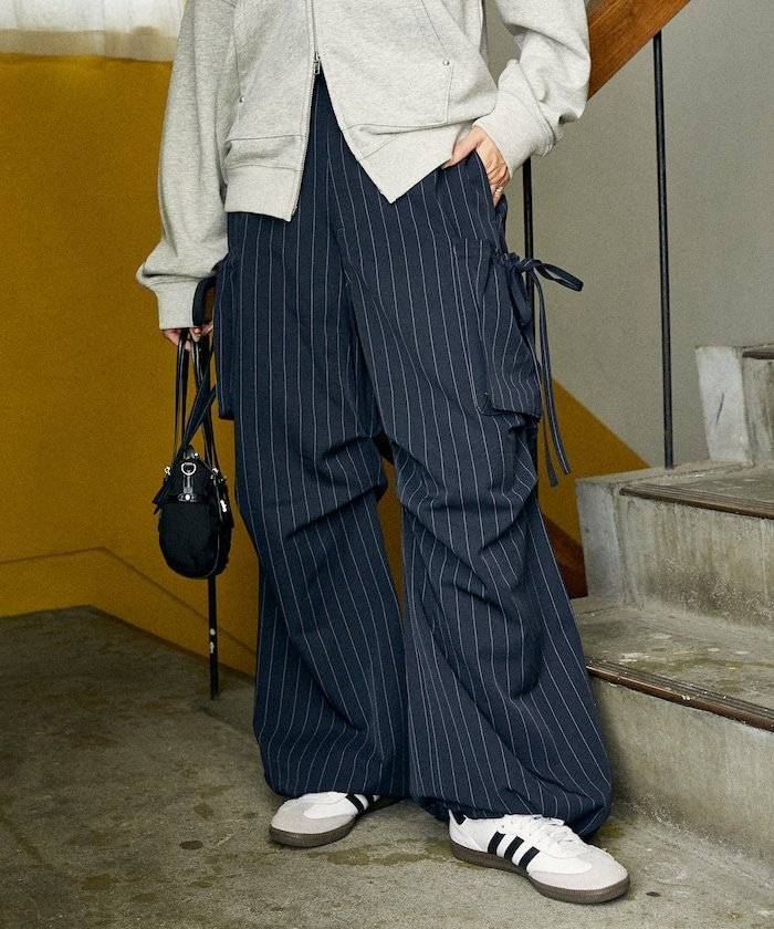 Заправленные брюки, сочетающие в себе современный и непринужденный стиль, идеально подходят для создания акцента ●Силуэт, напоминающий брюки-карго, и большие боковые карманы создают яркий образ●Ленточки на карманах добавляют женственности●Силуэт можно регулировать с помощью шнурка внизу. Двусторонний дизайн, позволяющий носить брюки как в прямом, так и в стиле джоггеров.●Ткань на ощупь напоминает брюки, создавая повседневный, но элегантный образ.●Задняя часть пояса эластична для комфортной посадки, а передняя часть выглядит аккуратно.●Шлевки для ремня позволяют создавать множество вариантов сочетаний. Рекомендуемые сочетанияЭти брюки имеют привлекательные боковые карманы, поэтому сочетайте их с простым топом для модного образа.Сочетайте их со свитшотом или худи для расслабленного уличного стиля в корейском стиле.Сочетайте их с рубашкой или курткой для изысканного, но в то же время утонченного повседневного образа.Эту универсальную вещь можно сочетать по-разному: от кроссовок для повседневного образа до ботинок для более изысканного образа или туфель на каблуке для более женственного образа. Благодаря модному дизайну в стиле брюк-карго, ткань придает брюкам вид классических брюк, что делает их более солидной вещью.---*Цвет изделия указан на изображении с подробным описанием.*Цвет изделия на изображении может отличаться от реального в зависимости от условий освещения и угла обзора, как в помещении, так и на улице. Также обратите внимание, что указанный размер может немного отличаться от реального.*При ношении или использовании обязательно проверяйте этикетку качества и бирку с информацией, прикрепленные к изделию.