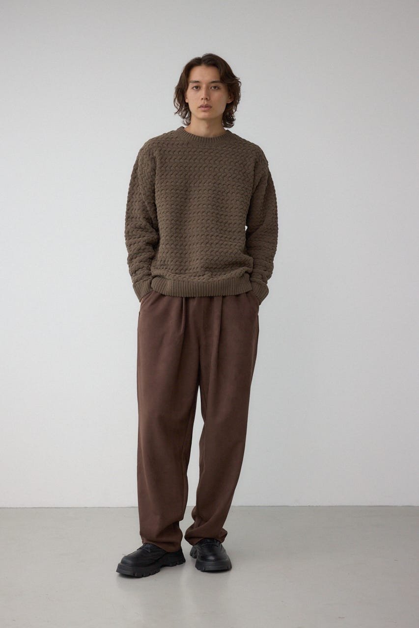 Этот матовый мохеровый трикотаж имеет уникальную текстуру, созданную за счет неравномерности плетения «корзинка».