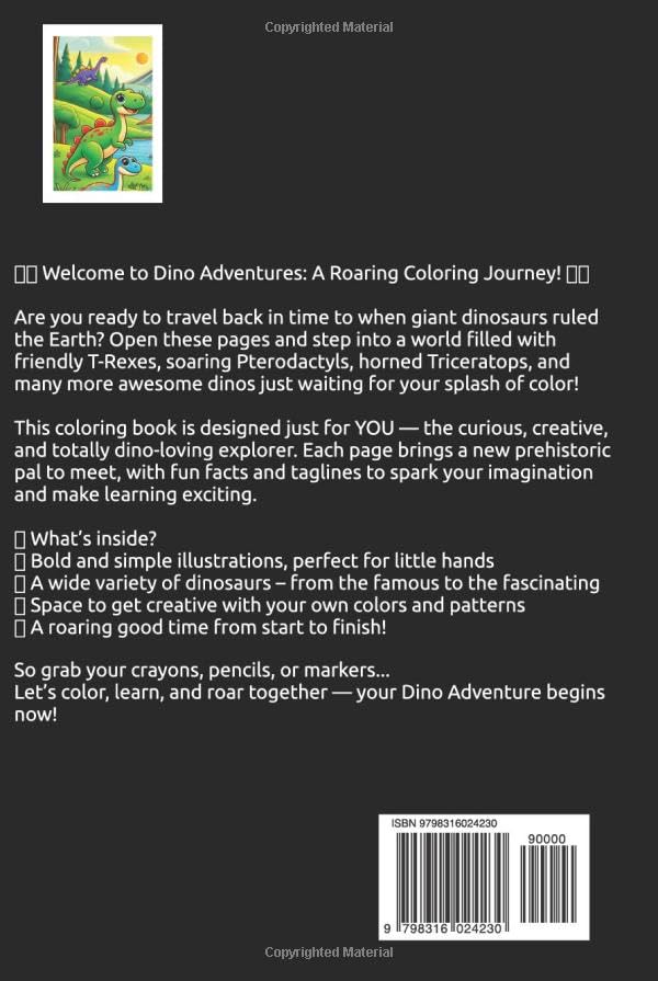 Эта раскраска создана специально для ВАС - любознательных, творческих и без ума от динозавров исследователей. На каждой странице вас ждет встреча с новым доисторическим другом, а также интересные факты и слоганы, которые пробудят ваше воображение и сделают обучение увлекательным.