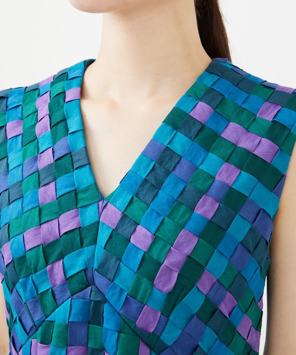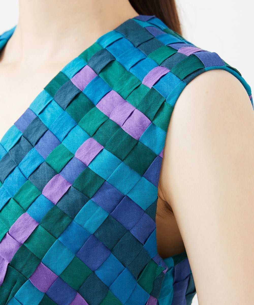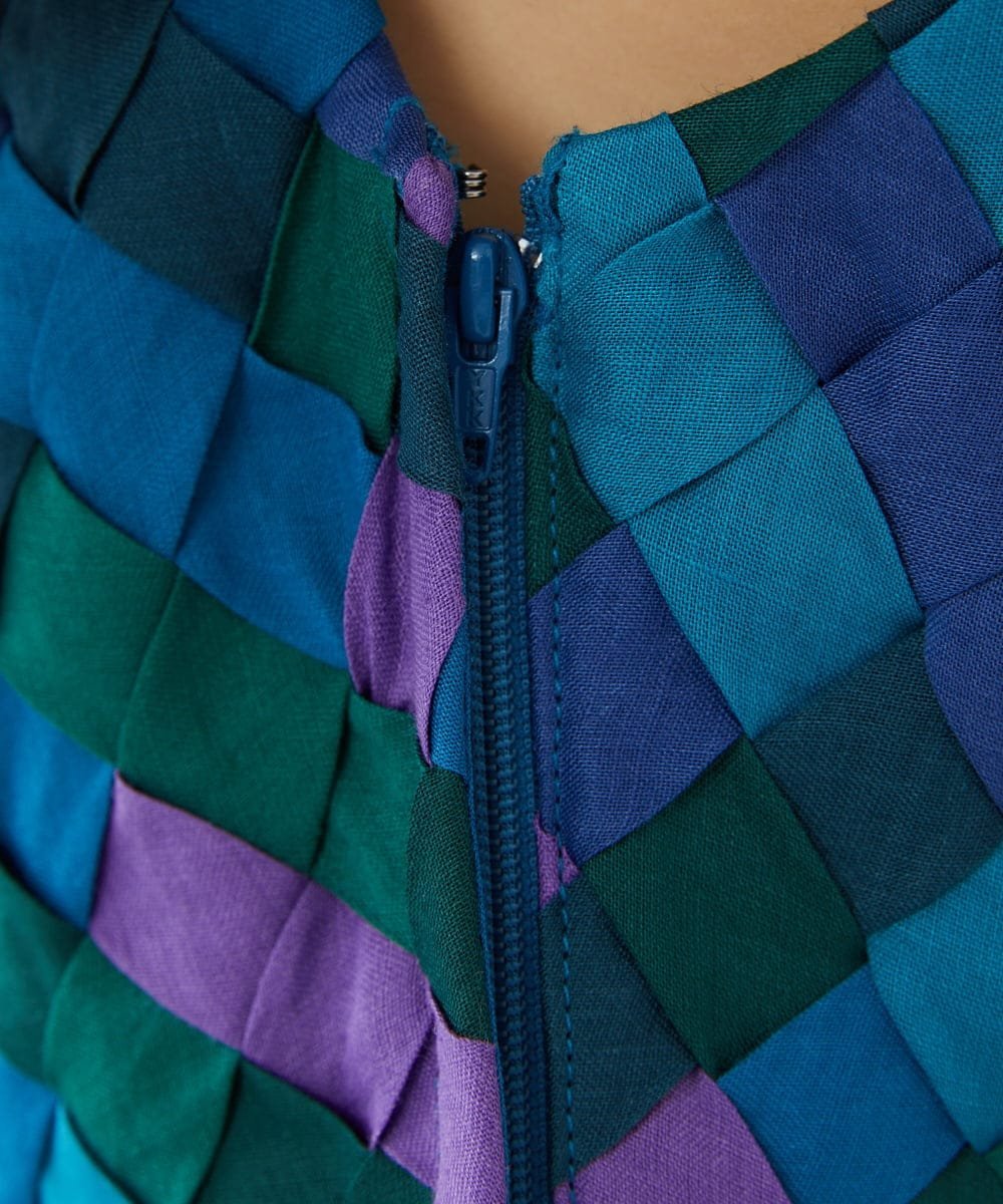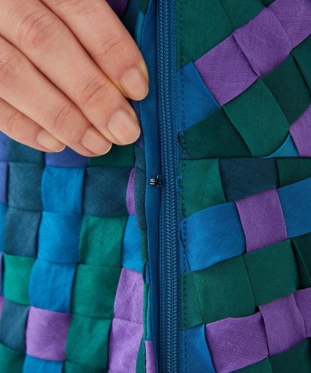 Благодаря кропотливой ручной вязке семи цветов льняной ленты, неравномерная текстура, не встречающаяся в принтах или тканях, окрашенных пряжей, создает ощущение роскоши.