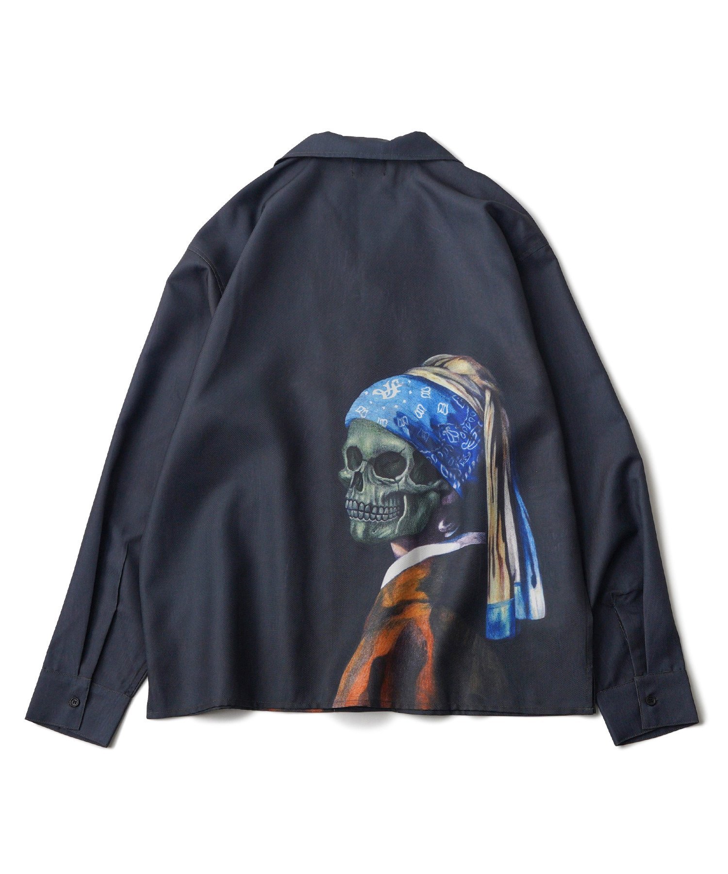 Рубашка с открытым воротником и разнообразными графическими принтами по всей поверхности.