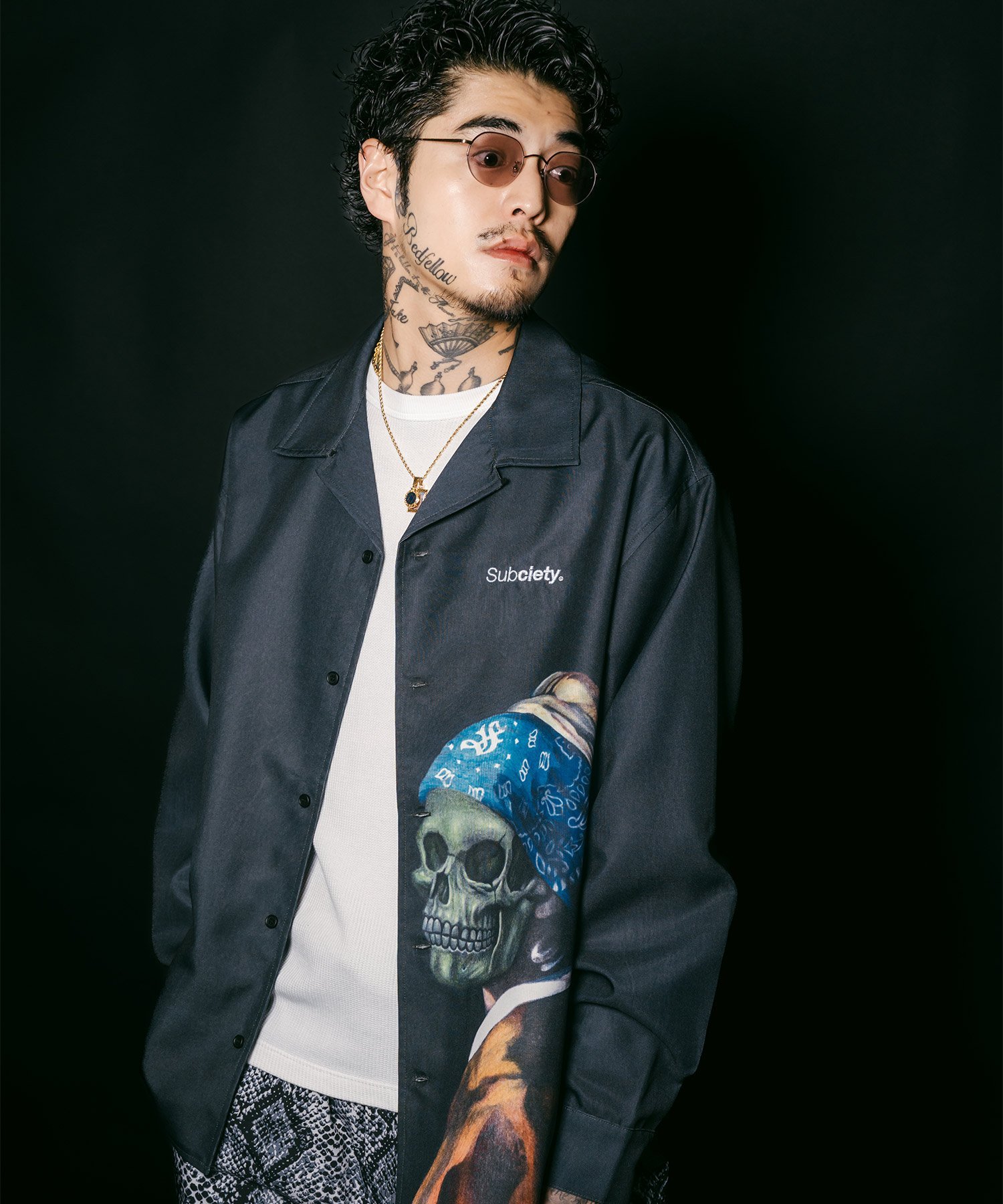 Главный логотип бренда, «THEBASE», вышит на левой стороне груди рубашек A и B, а слово «THESUBCIETY» вышито на груди рубашки C.
