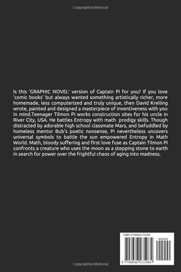 Подросток Тилмон Пи работает на стройке у своего дяди в Ривер-Сити, США. Он борется с Энтропией, используя свои математические способности. Несмотря на то, что его отвлекает очаровательный одноклассник Марс, и он сбит с толку поэтическими нелепостями своего бездомного наставника Баба, Пи тем не менее открывает универсальные символы, чтобы сразиться с Энтропией, наделенной силой Солнца, в Математическом мире. Математика, кровавые страдания и первая любовь сливаются воедино, когда капитан Тилмон Пи противостоит существу, использующему Луну как ступеньку на Землю в поисках власти над ужасающим хаосом старения и безумия. Насладитесь другими живописными новеллами Крейлинга от художника и автора Дэвида Крейлинга.