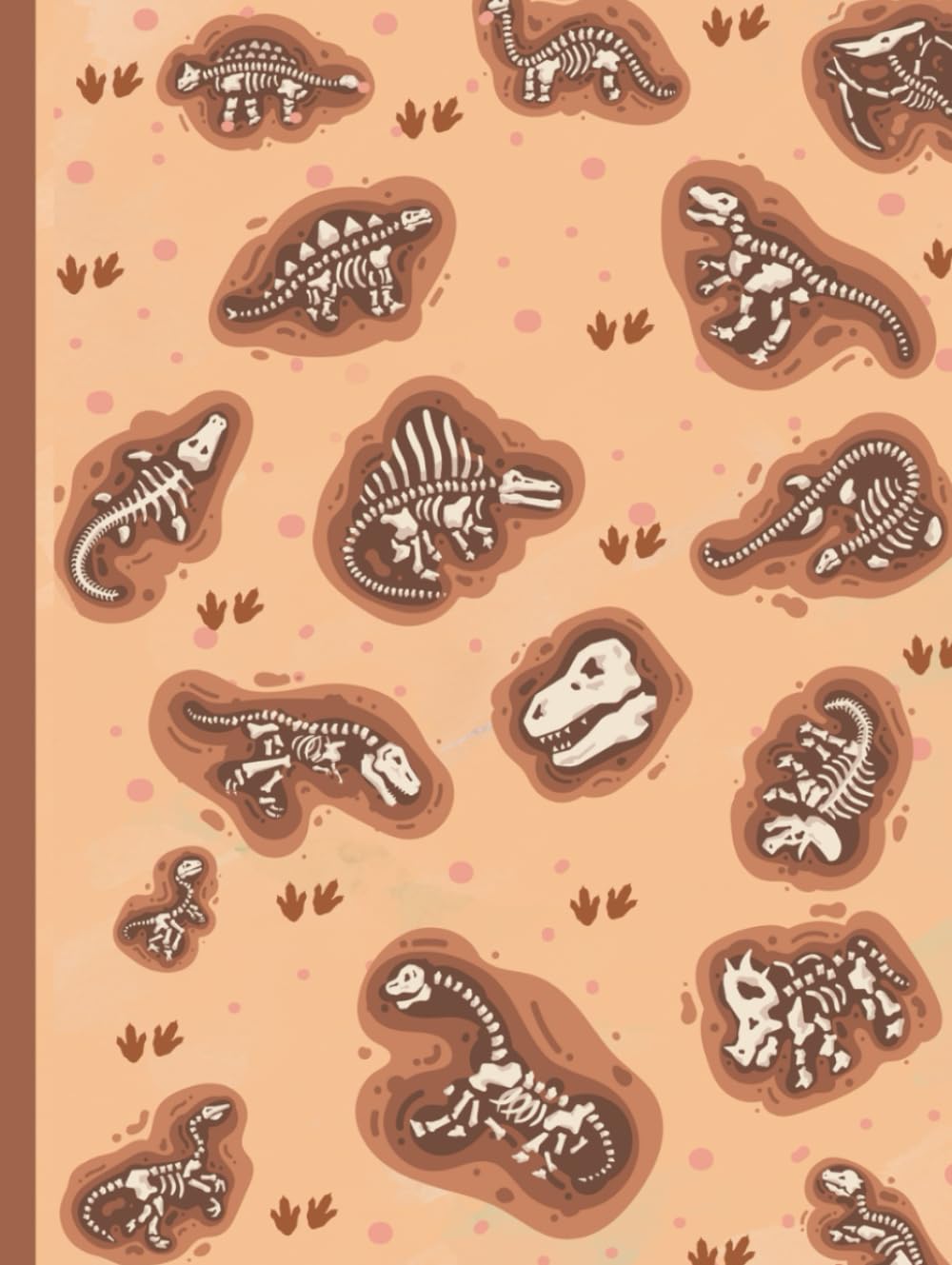 100 чистых страниц: Этот скетчбук на 100 страниц без разлиновки предоставляет достаточно места для эскизов, рисунков и свободного проявления творчества. На каждой странице внизу изображен забавный значок динозавра, добавляющий нотку доисторического очарования.