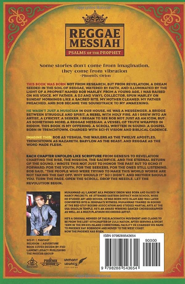 Для Феникса Ориона, мультидисциплинарного художника и автора текстов песен, это не просто его двенадцатая книга, изданная самостоятельно; это самая личная его работа. Всю жизнь изучая музыку и послание Марли, Орион вырос, слушая голос Боба, вплетенный в ткань его дома, словно священное писание, которое его отец-диджей проигрывал, и который ощущал в своей душе как евангелие. Теперь, после написания одиннадцати предыдущих работ, он возвращается с открытым сердцем, предлагая этот проект, созданный с любовью, как священный свиток звука и истории.