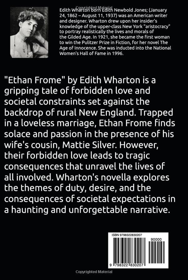 Однако гнетущее бремя долга, бедность и общественные ожидания нависают над Итаном и Мэтти, ведя их по пути трагических последствий. Уортон мастерски сплетает повествование о несбывшихся желаниях, несбывшихся мечтах и разрушительной силе общественных норм. Благодаря ярким описаниям сурового пейзажа и богатой характеристике персонажей, она передает суровость мира Итана и удушающие ограничения его обстоятельств.