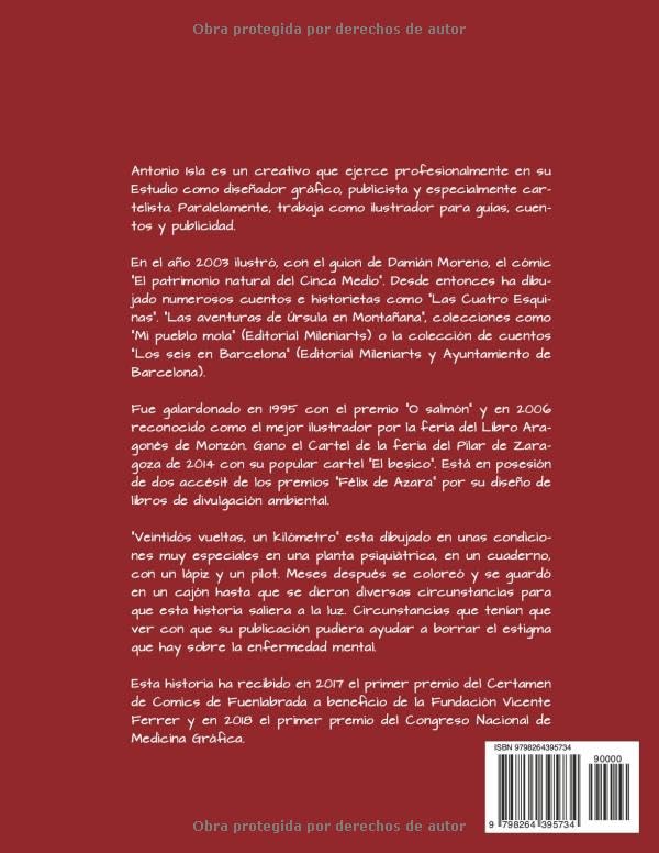 «Veintidós Vueltas Un Kilómetro» - это автобиографическая графическая новелла, которая выглядит забавно. Это реальная история человечества, в которой мы живем с депрессией, тревогой и психическим хаосом, конфликтами с юмором, иронией и многим сердцем.