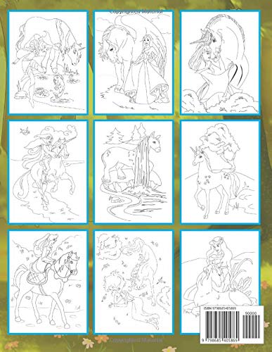 - • 25 уникальных иллюстраций: Содержит 25 прекрасных, детализированных, больших, нарисованных от руки и вдохновляющих изображений единорогов и сцен с феями, русалочками, принцессами и единорогами, которые можно с удовольствием раскрашивать!