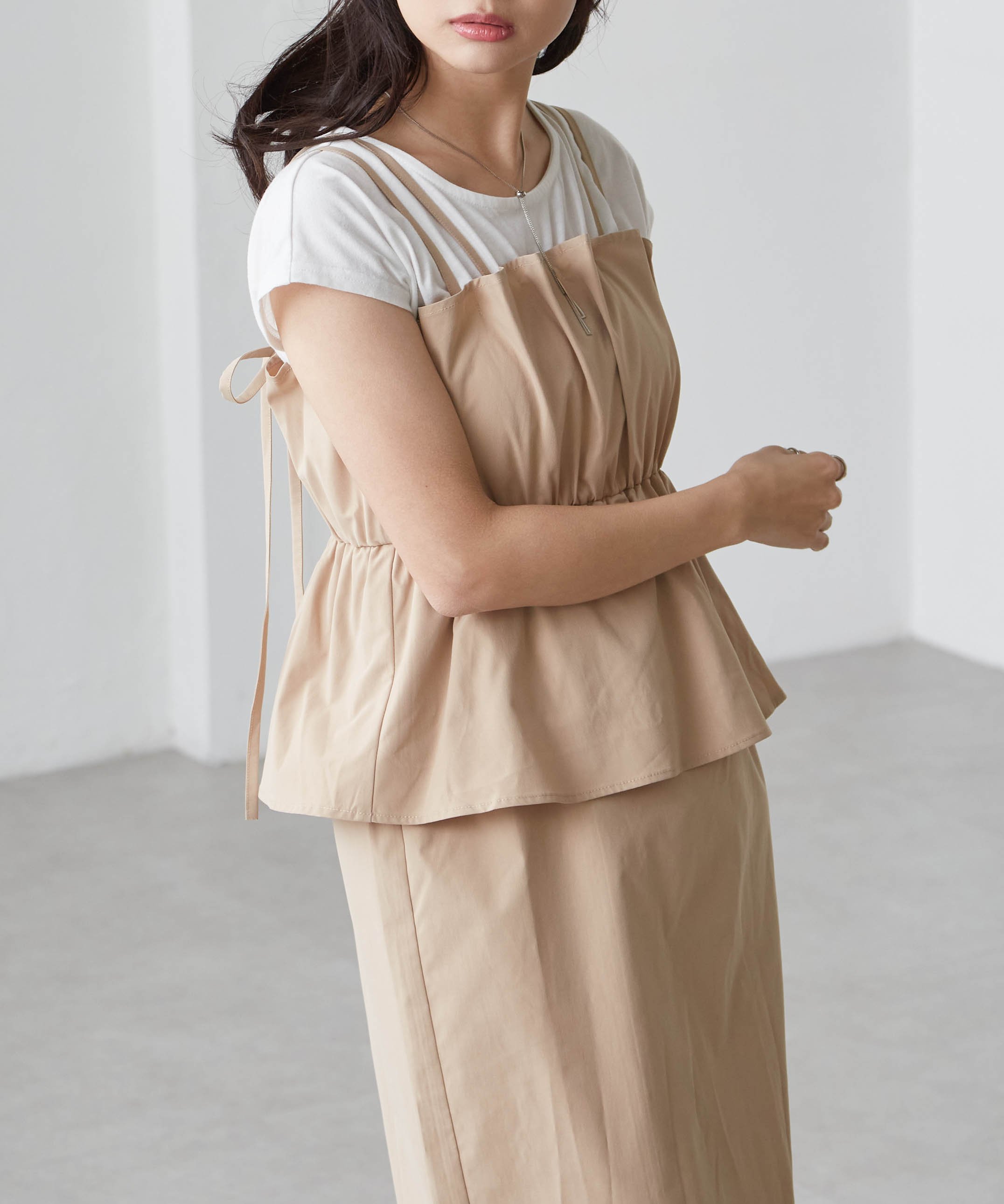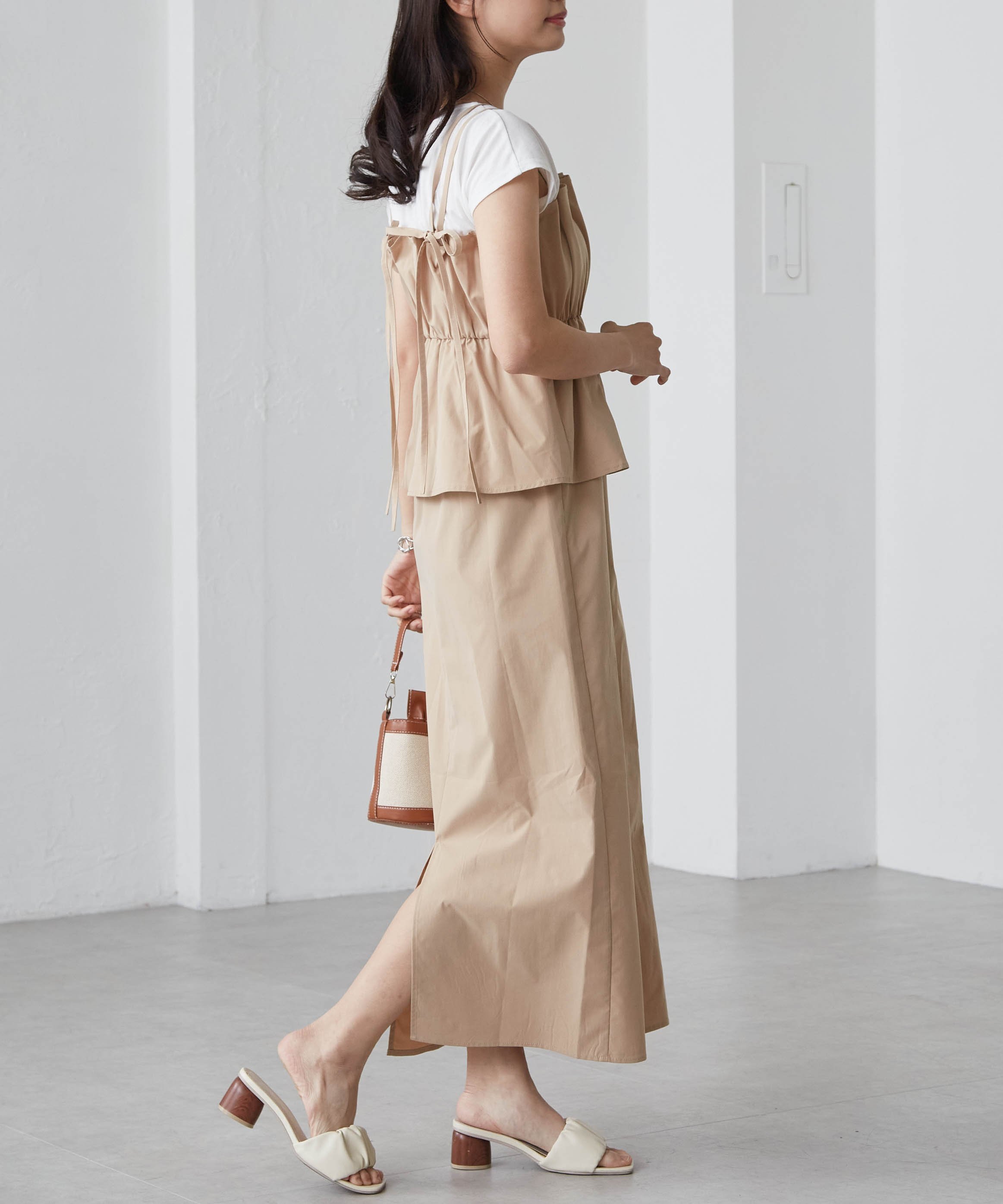 Двойные бретельки создают милый фасон сзади с завязкой из ленты♪