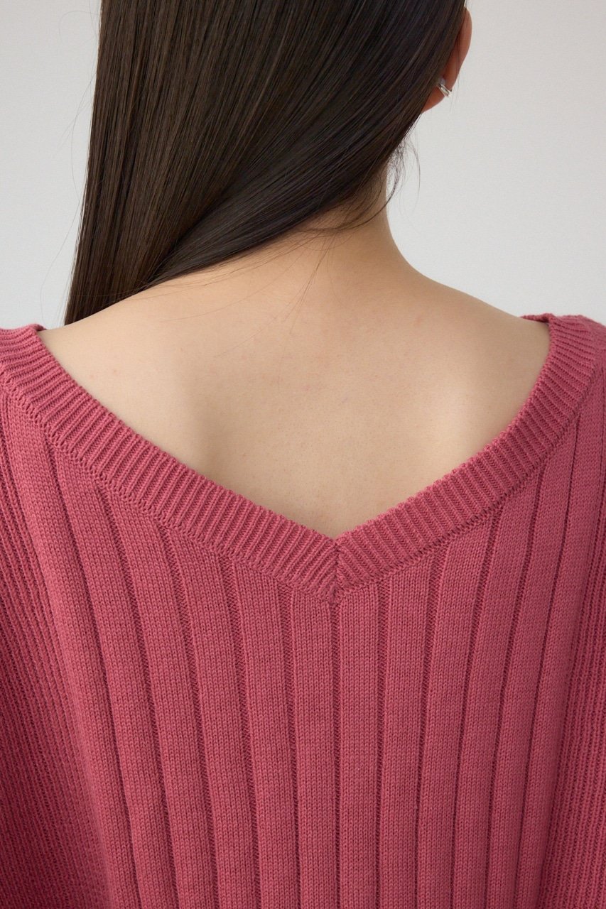 Вырез горловины прекрасно подчеркивает ключицы, а ребристая вязка сужается к бокам, создавая эффект стройности.