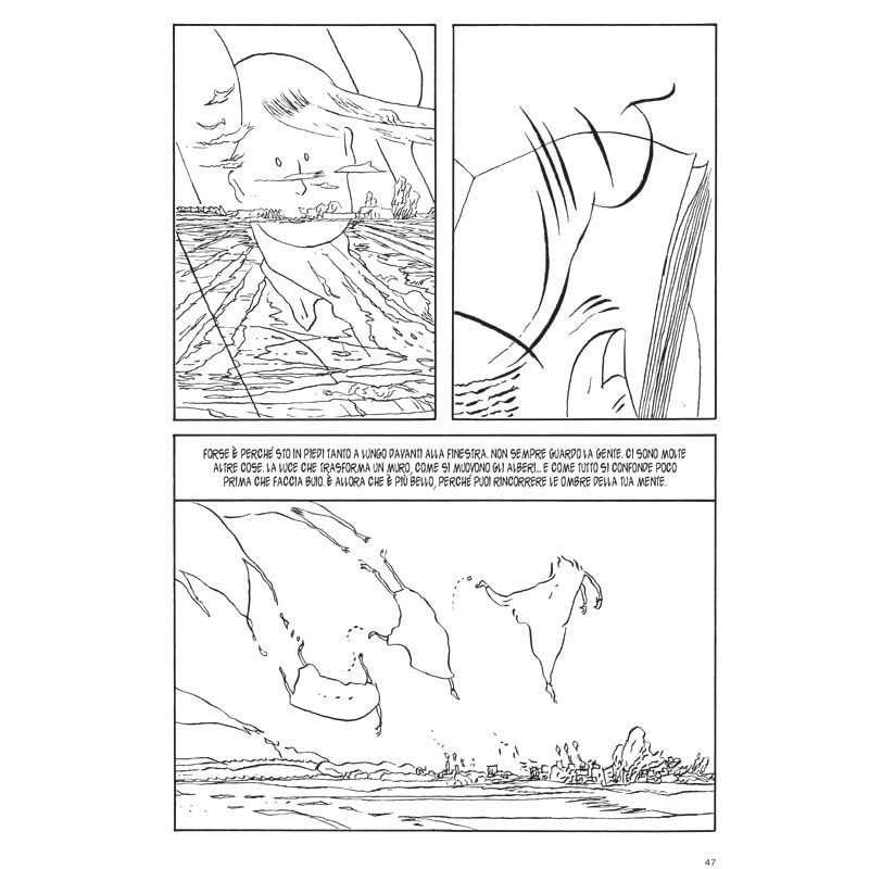 Романтическое слово и образы в белом и черном цветах, которые кажутся мимолетными и вызывающими воспоминания, создают пространство для империи. Главный герой истории - один скульптор с глазами «болезненных» и изящная личность; Далла Суа Finestra sui Tetti osserva il Piccolo Universo della Citta в преобразовании immaginando altre luci e lontane quotidianità. Ее жизнь влюбилась в серию персонажей, которые стали поводом для размышлений и созревания. Tra questi spiccano tre femminili: Ирен, la ex moglie a cui è legato da un rapporto tenero e irrisolto; Аврора, случайное столкновение, кульминация момента страсти; La Botanica Miriade che si dedica alla sua serra in attesa di richere le piante che l'amato le invia dai suoi viaggi. Когда я был мужиком, мой философ-любитель в больнице, вот «скварциатор», который не был вызван, чтобы поддержать влияние опере д'арт, испытывающее импульс отчаяния, иль профессор, который заслужил все чувства Мириады. L'esplorazione di queste relazioni si sviluppa fianco a fianco con il thema della Creazione artica che, al pari dei rapporti umani, не служит «дальнему началу прочного укрепления или altre sicurezze, ma perché più cose si sfiorino, e sfregandosi Appena Creino Altro». Вся эта напряженность прендоно тела неи поэтических диалогов фирма да Лилия Амбрози и ее изображения в Cui и Segni Rafatti и Penna Sottile делле фигура coistono кон геометрия Urbane Rese Accuratamente, mentre il Tratto Si Falda, Anche Nelle Architetture, Sotto La pressione delle Perturbazioni Atmosferiche, e Дефлагра в следующей последовательности посвящает инкубам, повторяет стиль Джексона Поллока и заранее объявляет Маттотти Гензеля и Гретель и Олтремаи.