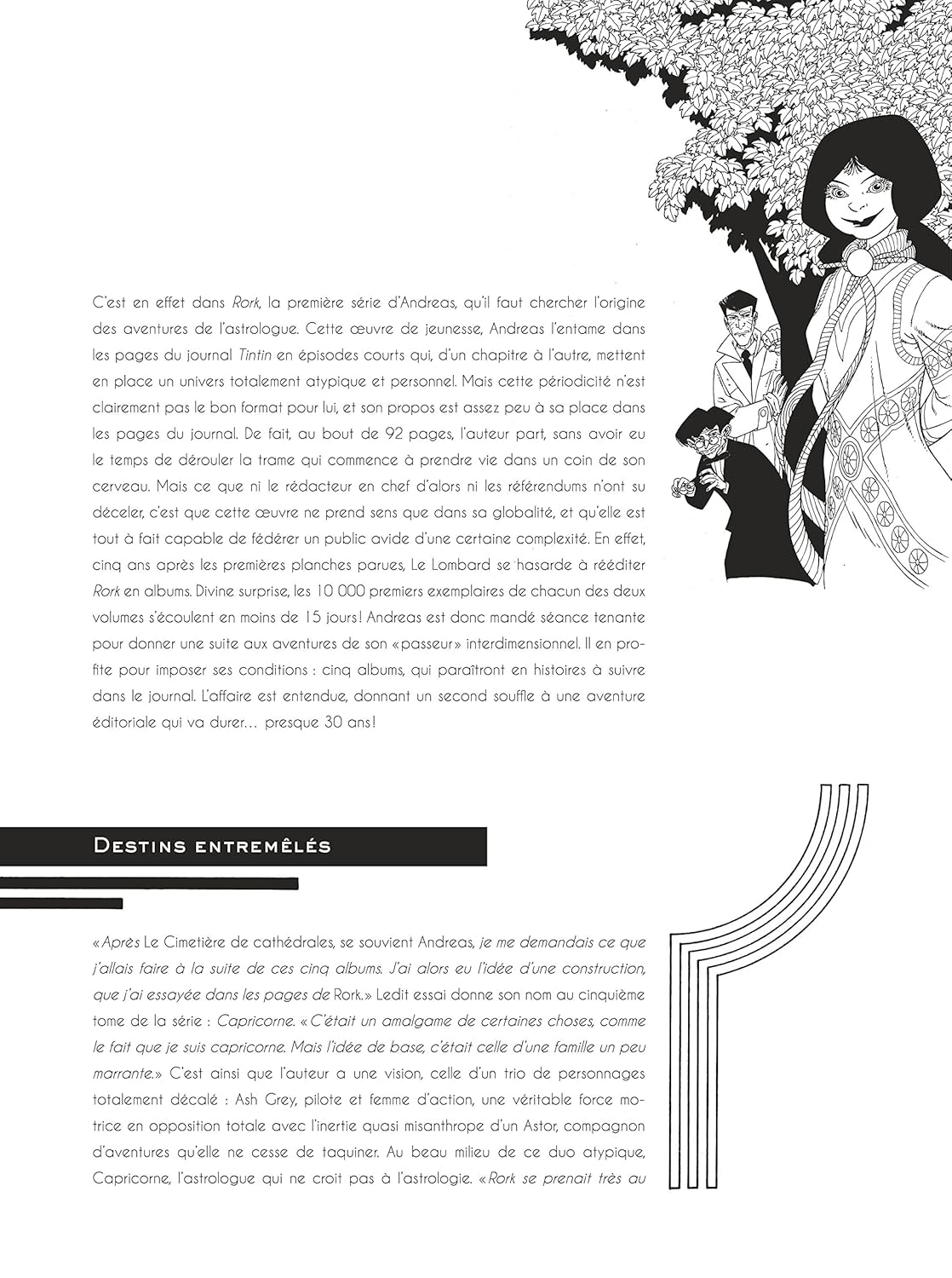 Не в Аллемане, это бельгиец, который Андреас устраивает курсы Эдди Папе и Клода Ренара, или он действительно знает имя будущего великого искусства. После нескольких историй любви на страницах журнала Тинтина происходит премьера «Рорка». Он разработал уникальный стиль, завоевавший репутацию: длинные саги или все вместе соединенные, и планировали три длительных периода времени в поисках приключений, эзотеризма и приключений. Графика, эта сингулярность на бис плюс маркинте. В результате Андреас получил репутацию качественного и оригинального декупажа. Друг традиционного мастера, он не знает, как экспериментировать и заранее, способен спроектировать страницу из более чем 300 ящиков, как альбом Muet. В последние годы это самое важное в двух сериях: «Арк» и «Козерог». Et l'approche de la soixantaine ne l'empêche nullement de conserver la fraîcheur et le goût du risque qui definissent son oeuvre aussi excitante qu'exigeante.