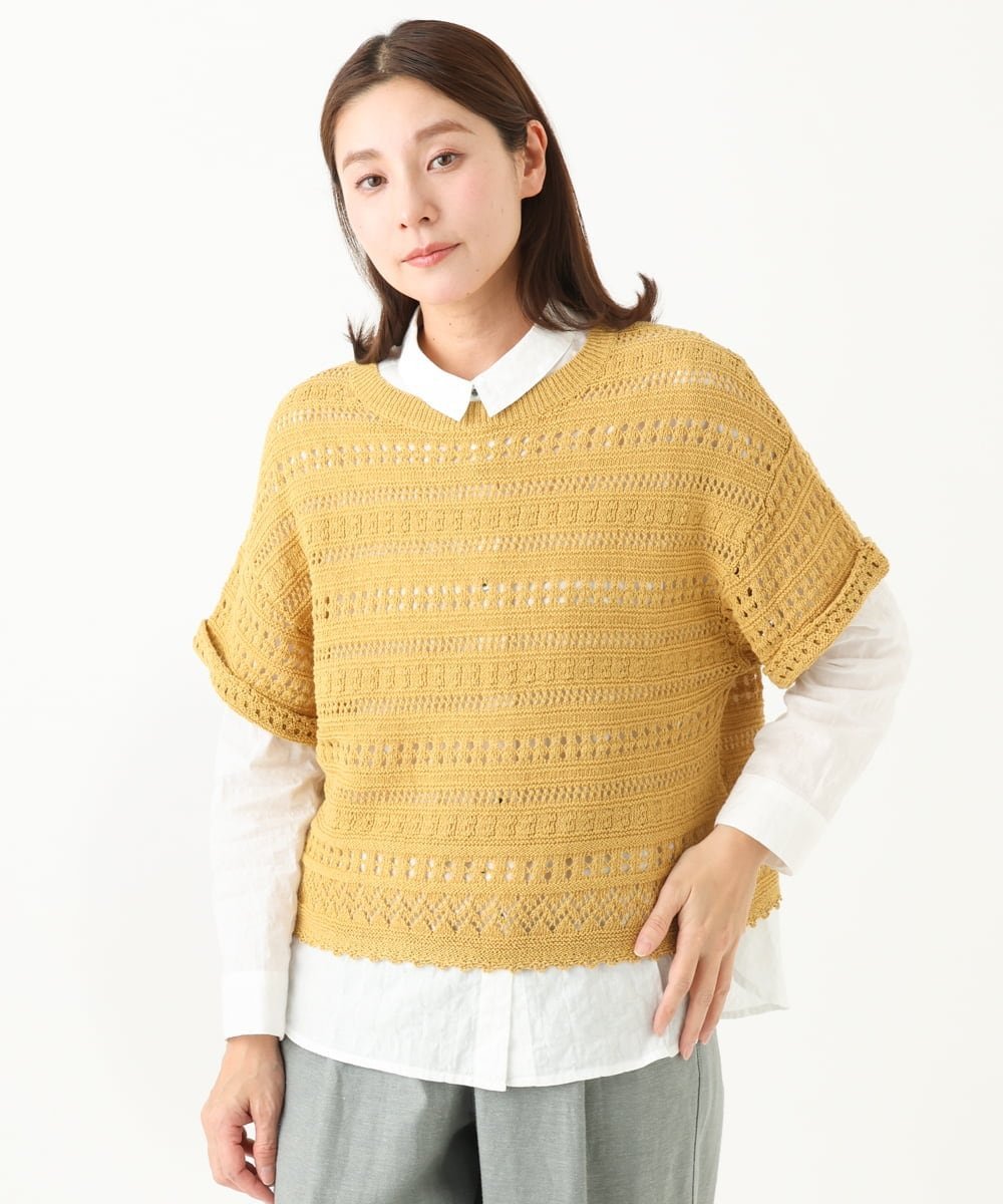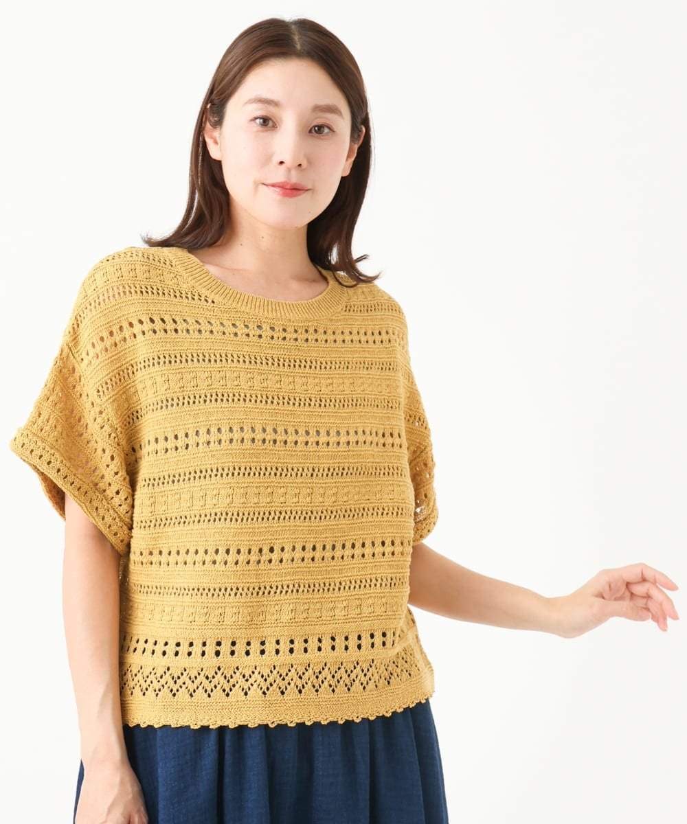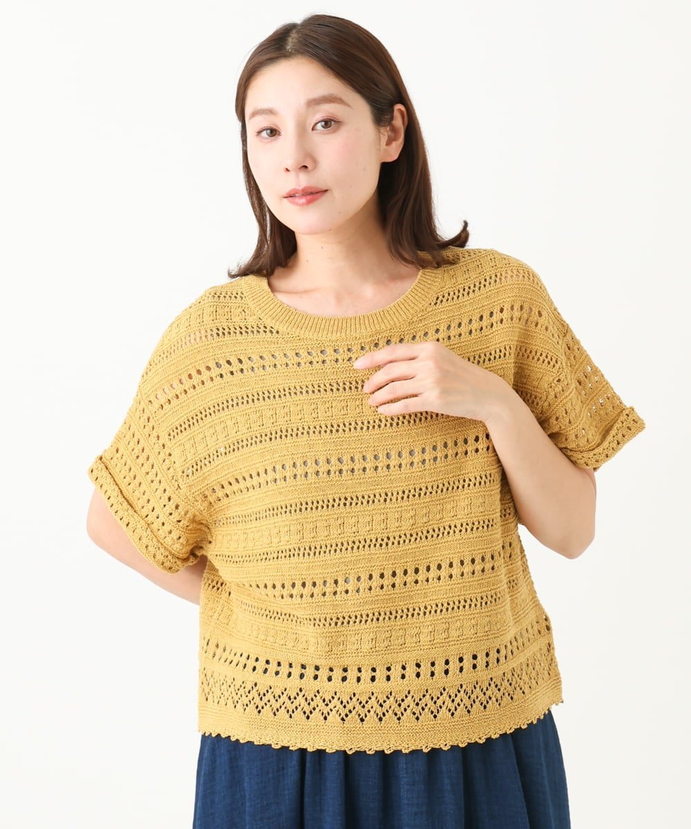 Пуловер из 100% хлопка, связанный крючком, с приятной, освежающей текстурой.