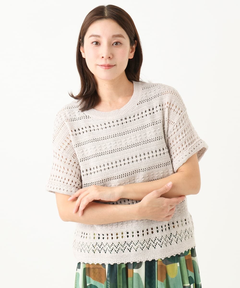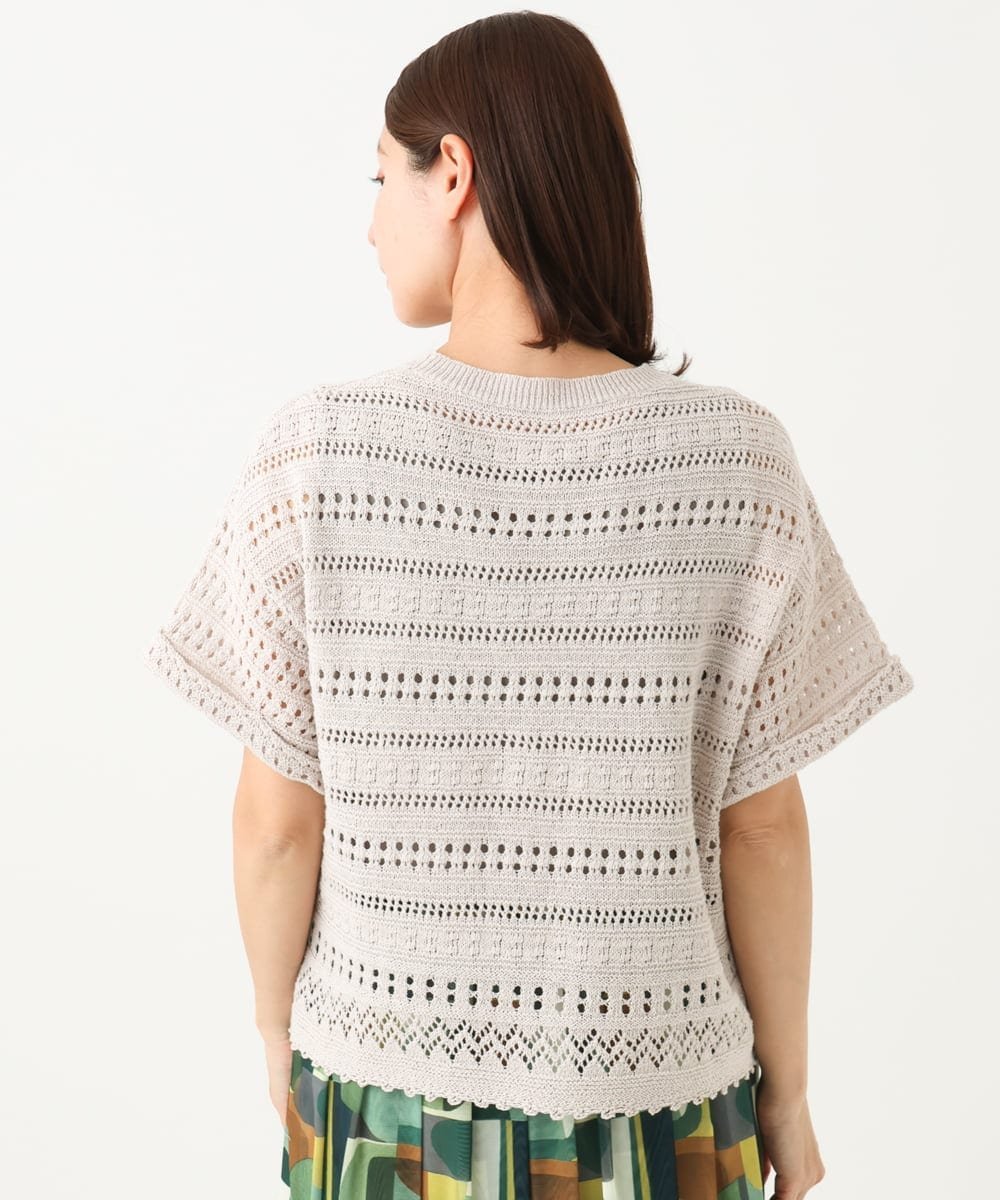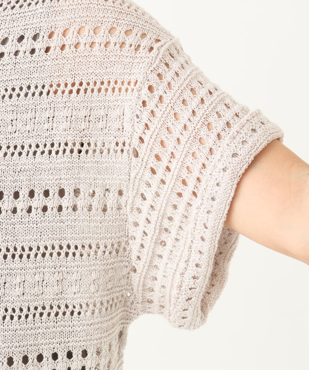 Пуловер из 100% хлопка, связанный крючком, с приятной, освежающей текстурой.