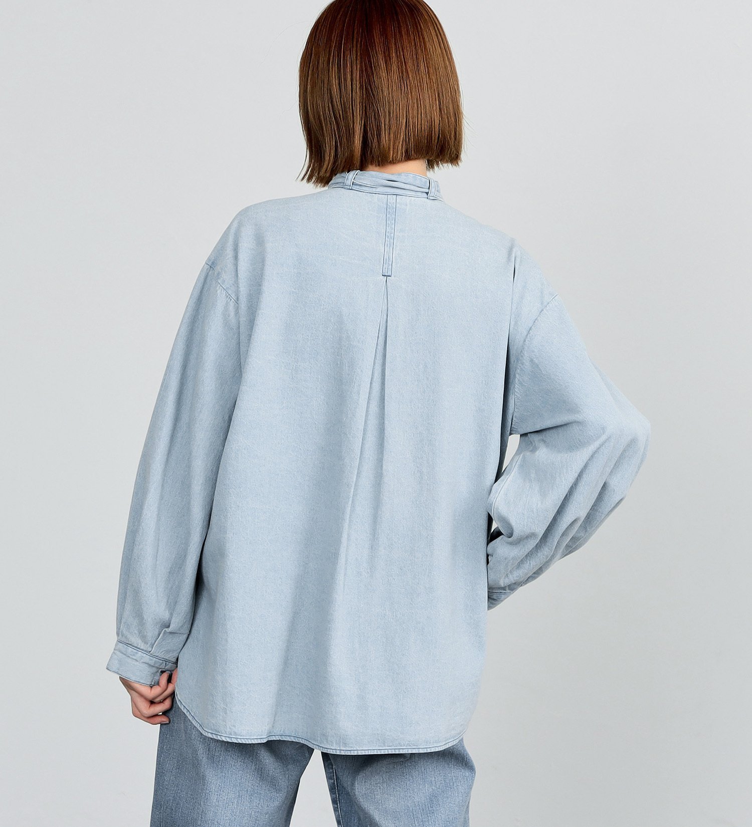 Изготовлена из 100% хлопкового денима, мягкого и приятного на ощупь. Пуговицы выполнены из тщательно отобранного орехового дерева. Рукава свободные, пышные. Лента съемная, что позволяет легко комбинировать вещи, что является еще одним большим плюсом.