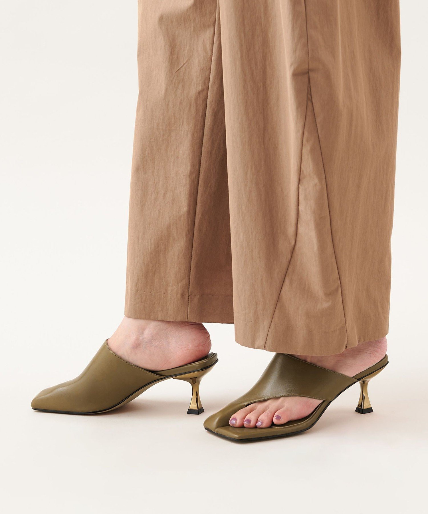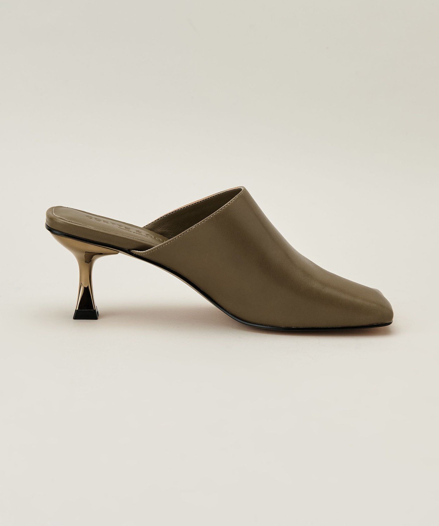 Черный цвет сочетается с блестящим каблуком, а оливковый и другие цвета имеют золотистый металлический каблук.