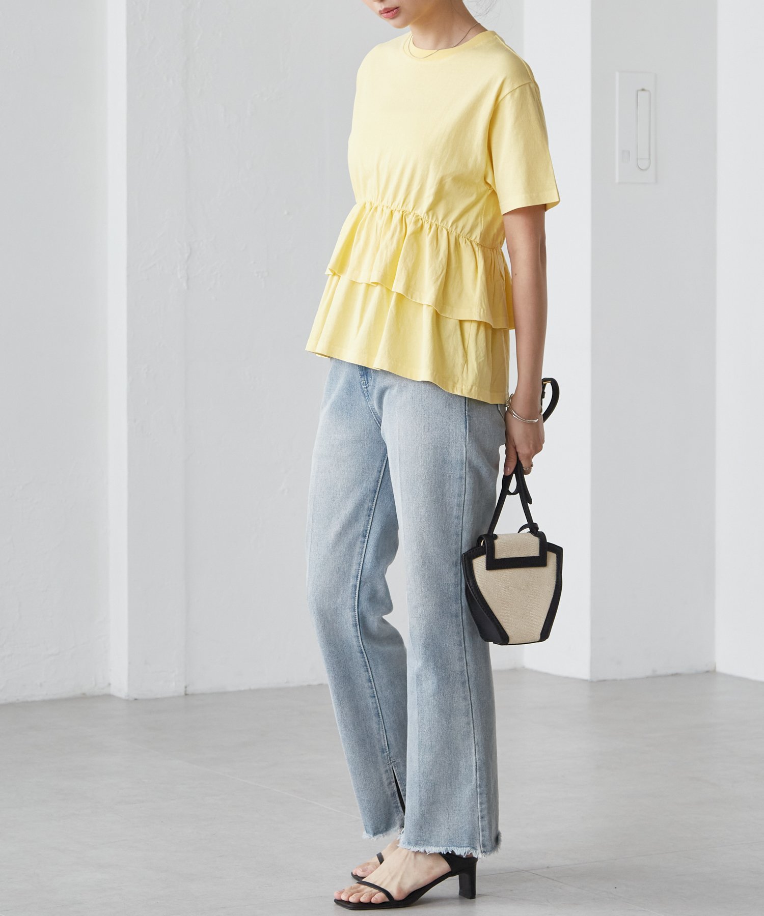 ・Двухъярусные собранные оборки добавляют объем в области талии, что делает это платье идеальным вариантом для ношения в качестве накидки◎