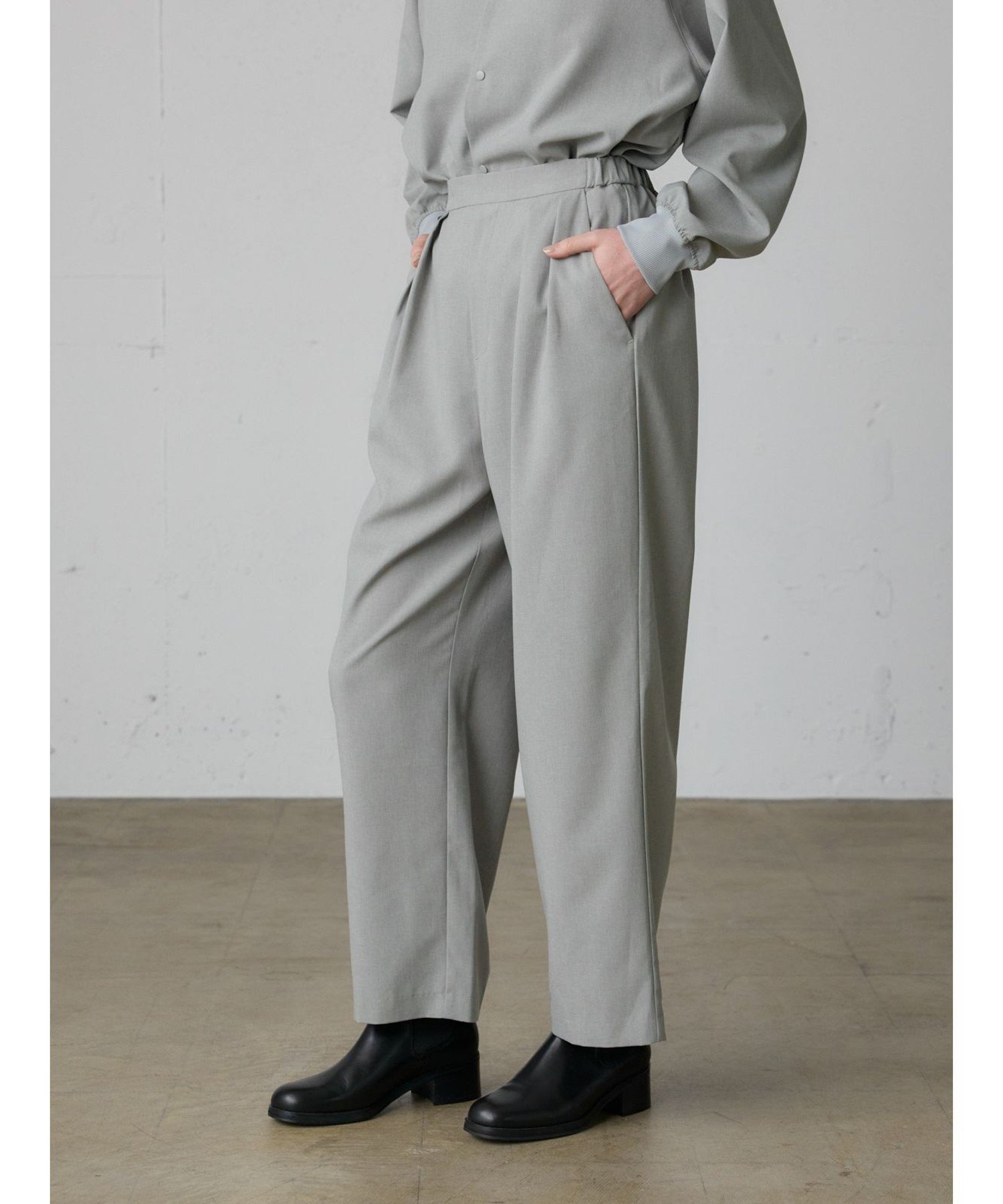 Эти брюки с широкими штанинами изготовлены из 100% переработанного полиэстера. Ткань имеет струящуюся текстуру, напоминающую камвольную. Они не мнутся даже после стирки. Задняя часть пояса эластичная, а дизайн включает складки от бедер. Они создают широкий, свободный силуэт. Доступные в трех основных цветах, эти брюки легко сочетаются друг с другом и подходят всем. В той же серии,
