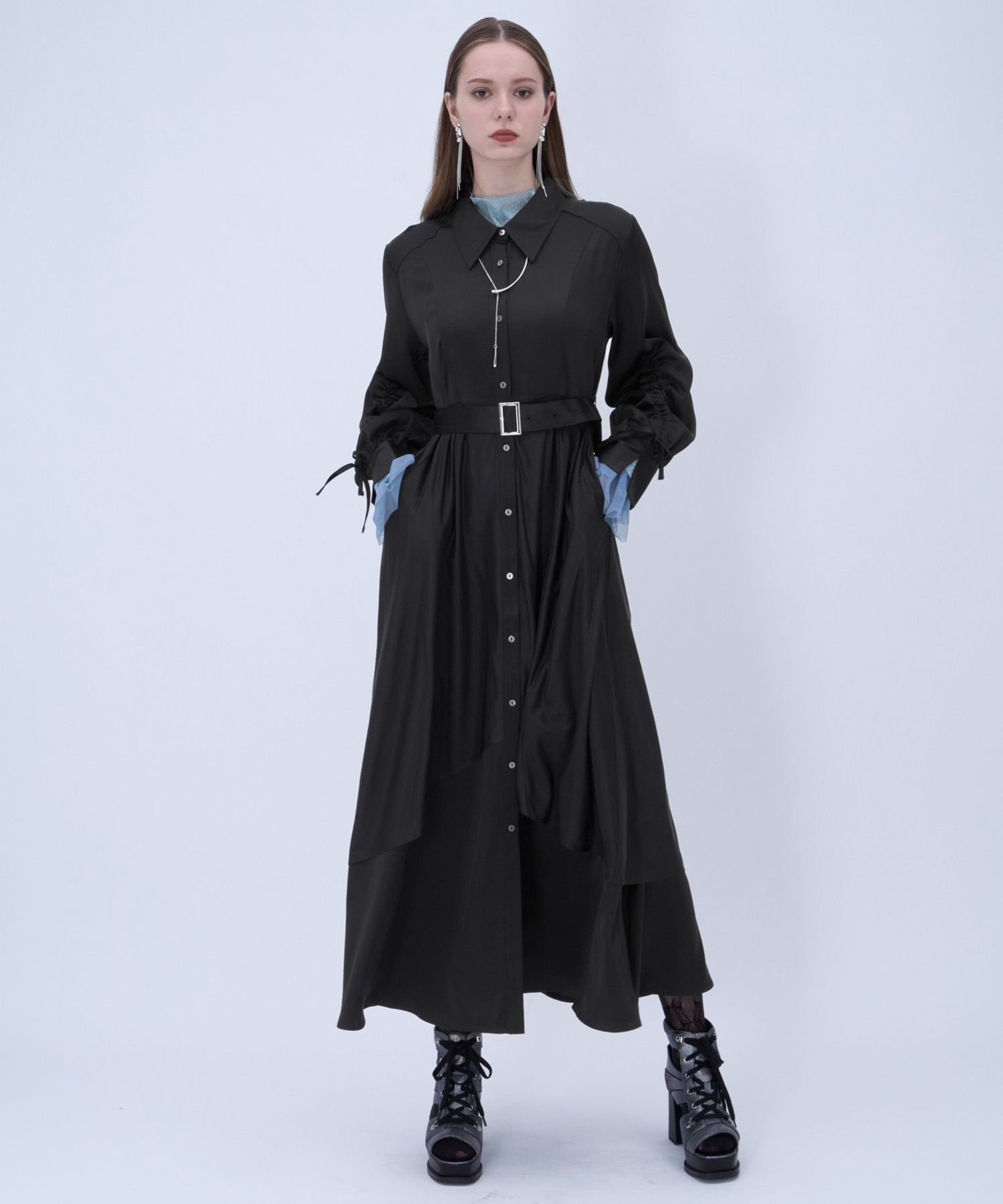□Пояс из того же материала также прикреплен к талии, чтобы вы могли подчеркнуть ее.